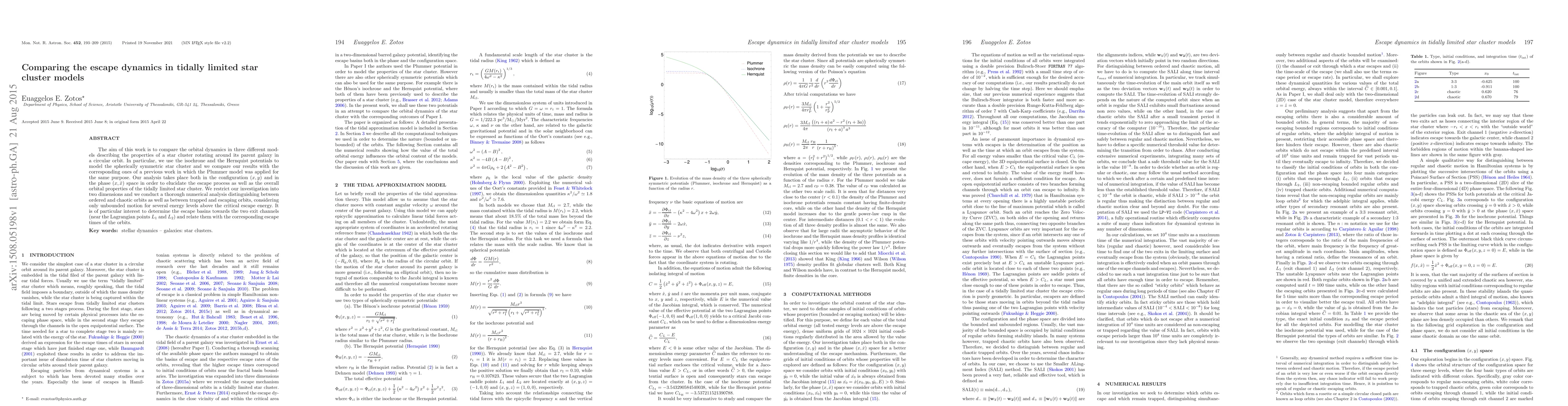 This paper compares orbital dynamics in three star cluster models—isochrone, Hernquist, and Plummer—focusing on escape dynamics in a two-dimensional system. It analyzes escape basins and escape times near Lagrangian points $L_1$ and $L_2$ to distinguish between ordered, chaotic, trapped, and escaping orbits.