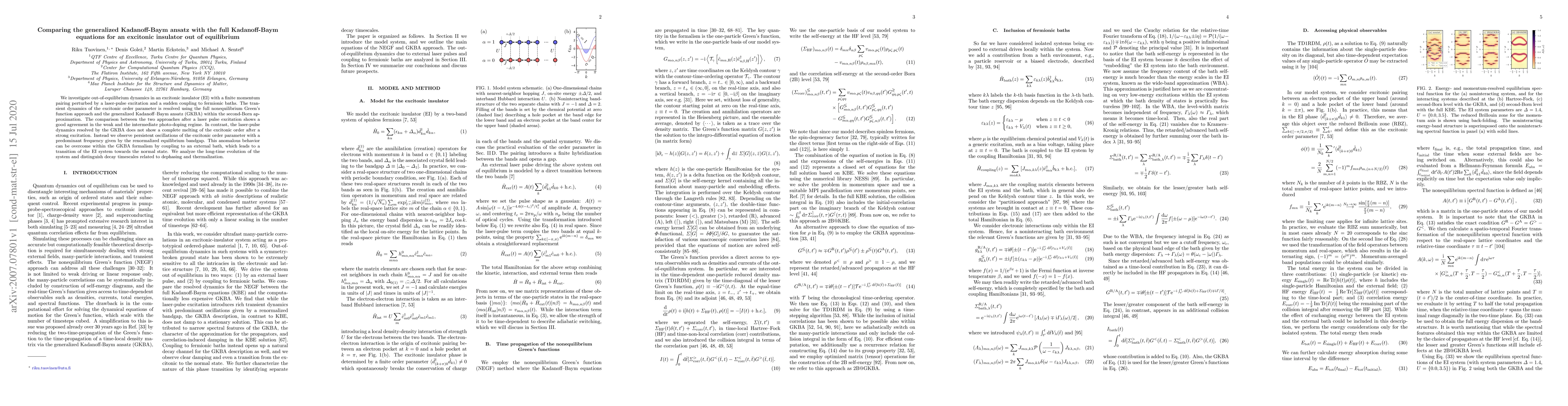 This paper compares the generalized Kadanoff-Baym ansatz (GKBA) with the full Kadanoff-Baym equations to study out-of-equilibrium dynamics in an excitonic insulator. It finds that both approaches agree well under weak to intermediate excitations, but GKBA reveals persistent oscillations and anomalous behavior under strong excitations, which can be resolved by coupling to an external bath.