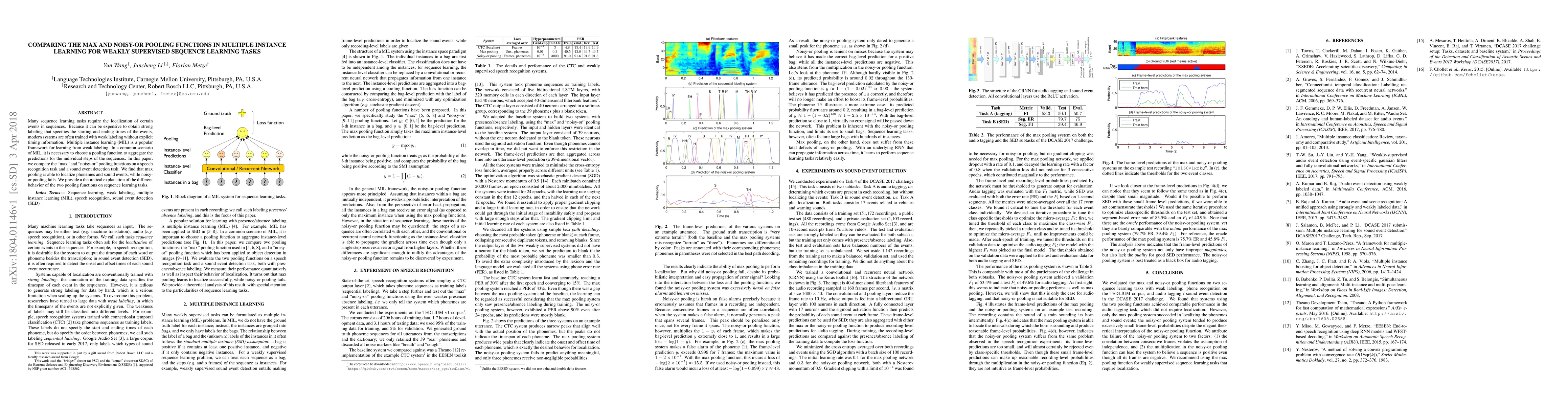 This paper compares the "max" and "noisy-or" pooling functions in multiple instance learning for weakly supervised sequence tasks, finding that max pooling effectively localizes phonemes and sound events, while noisy-or pooling does not, with a theoretical explanation provided for their differing performance.
