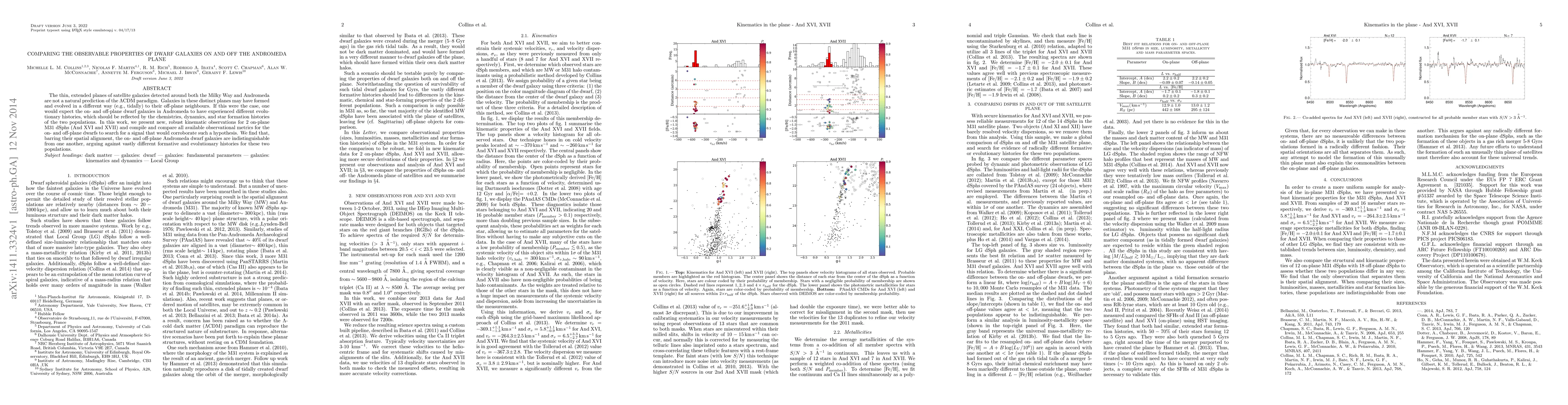 The thin, extended planes of satellite galaxies detected around both the Milky Way and Andromeda are not a natural prediction of the LCDM paradigm. Galaxies in these distinct planes may have formed and evolved in a different way (e.g., tidally) to their off-plane neighbours. If this were the case, one would expect the on- and off-plane dwarf galaxies in Andromeda to have experienced different evolutionary histories, which should be reflected by the chemistries, dynamics, and star formation histories of the two populations. In this work, we present new, robust kinematic observations for 2 on-plane M31 dSphs (And XVI and XVII) and compile and compare all available observational metrics for the on- and off-plane dwarfs to search for a signal that would corroborate such a hypothesis. We find that, barring their spatial alignment, the on- and off-plane Andromeda dwarf galaxies are indistinguishable from one another, arguing against vastly different formative and evolutionary histories for these two populations.