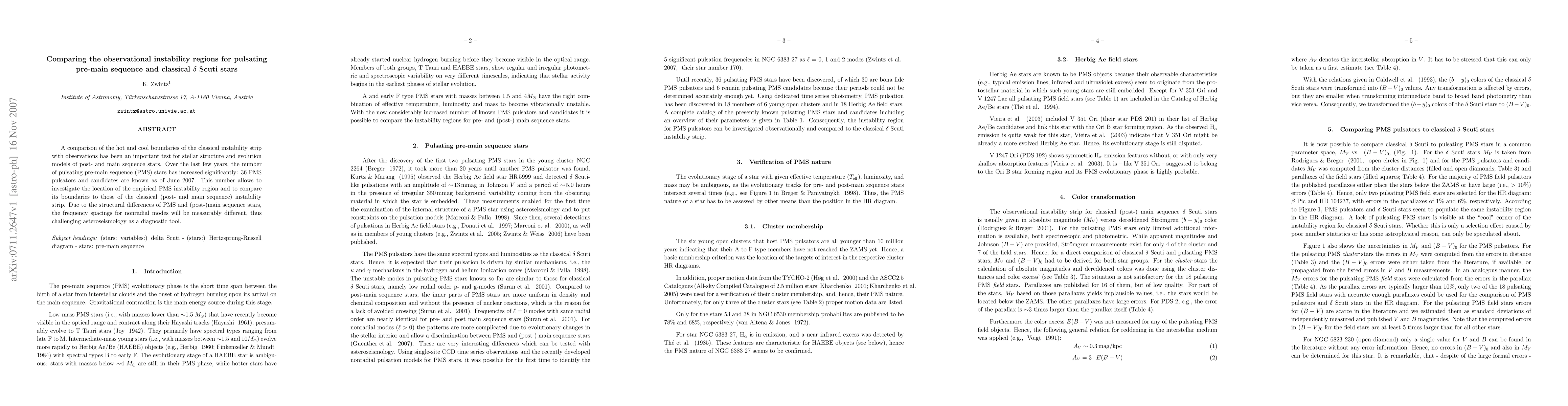 This paper examines the instability regions of pulsating pre-main sequence (PMS) and classical δ Scuti stars, comparing their boundaries and the implications for asteroseismology due to structural differences in these stellar phases.