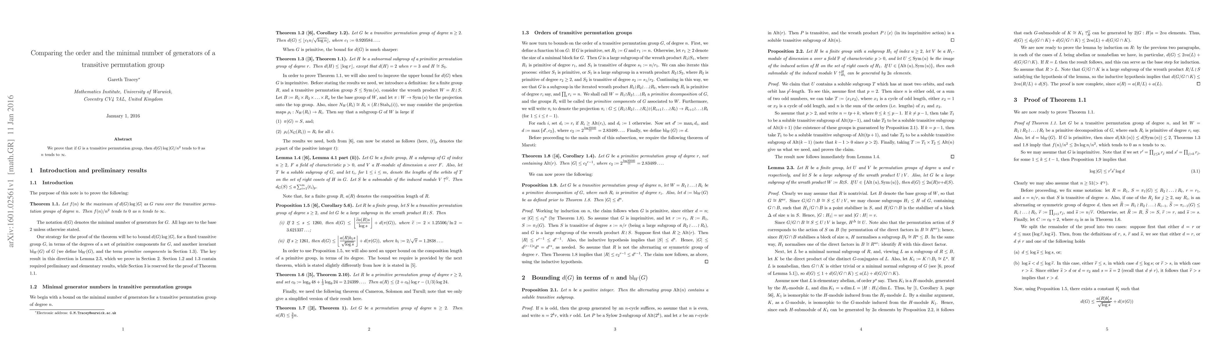 Researchers proved that for transitive permutation groups, a specific formula tends to 0 as n approaches infinity, indicating a theoretical limit on the minimal number of generators required for large groups.