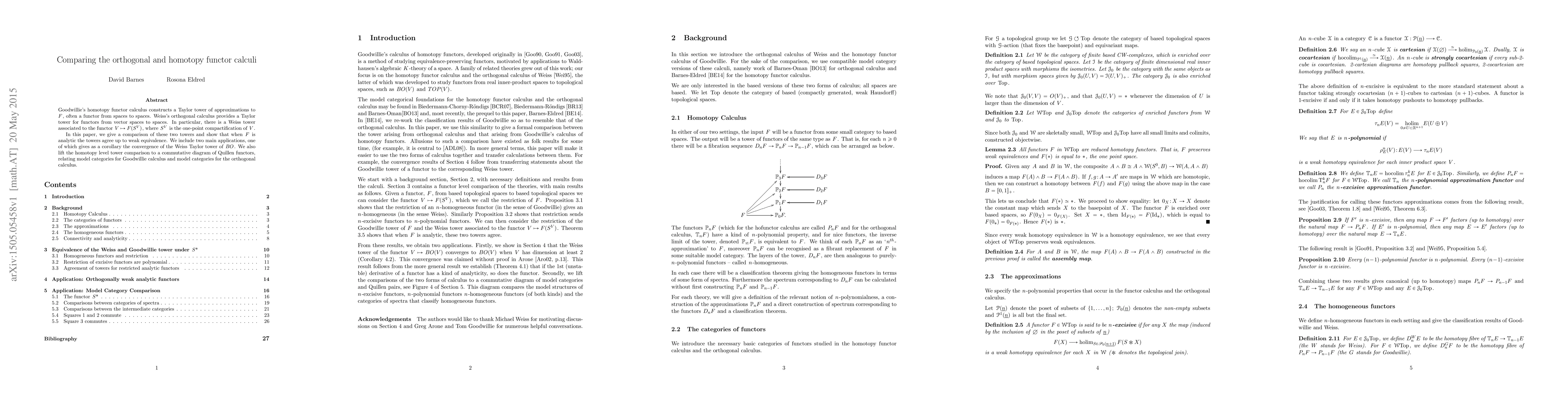 This paper compares Goodwillie's homotopy functor calculus and Weiss's orthogonal calculus, showing they agree up to weak equivalence for analytic functors. It also presents a commutative diagram of Quillen functors linking the model categories of both calculi and proves the convergence of the Weiss Taylor tower for BO.