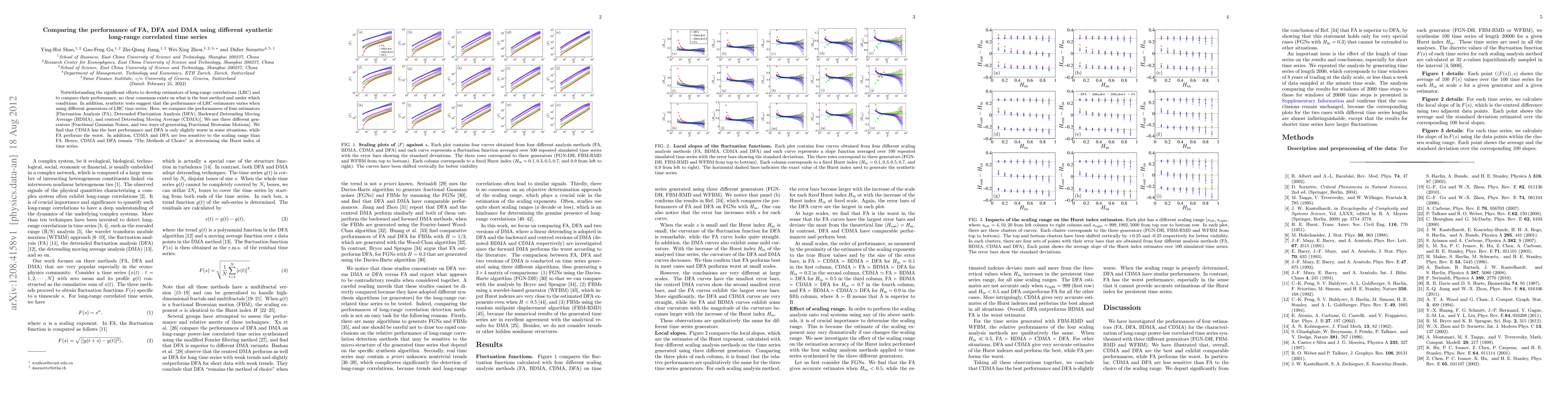 This study compares the performance of four long-range correlation estimators (FA, DFA, BDMA, CDMA) using various synthetic generators of long-range correlated time series. The results indicate that CDMA performs best, followed closely by DFA, while FA is the least effective, with CDMA and DFA showing greater robustness to scaling range variations.