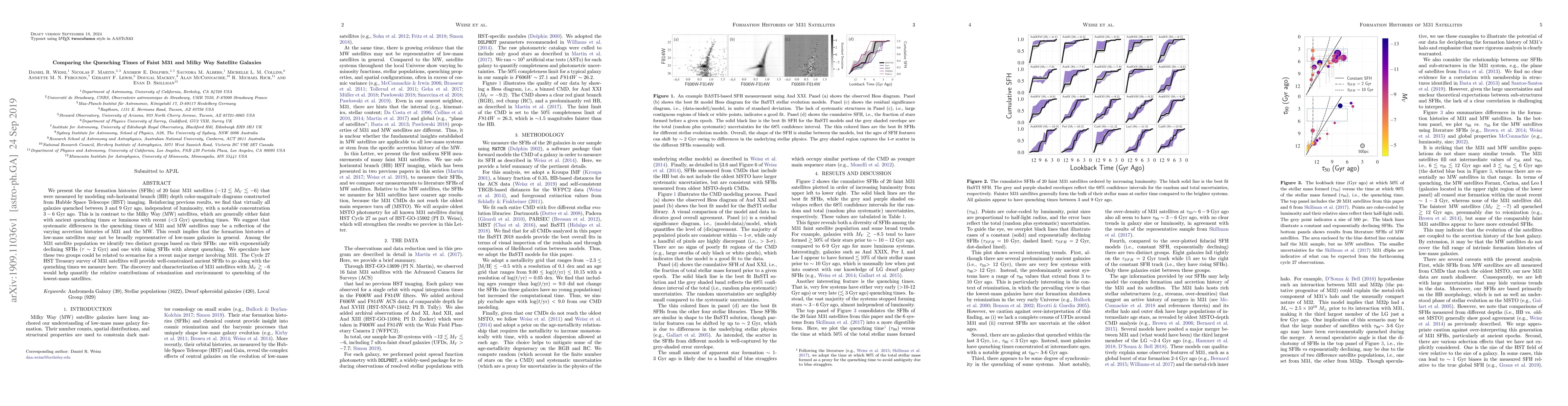 This paper compares the quenching times of faint M31 satellite galaxies to those of Milky Way satellites, finding that M31 satellites quenched predominantly between 3 and 6 Gyr ago, contrasting with the Milky Way's mixed quenching history. The study suggests that differences in accretion histories may explain these variations and highlights the need for further surveys to understand the quenching mechanisms in low-mass galaxies.