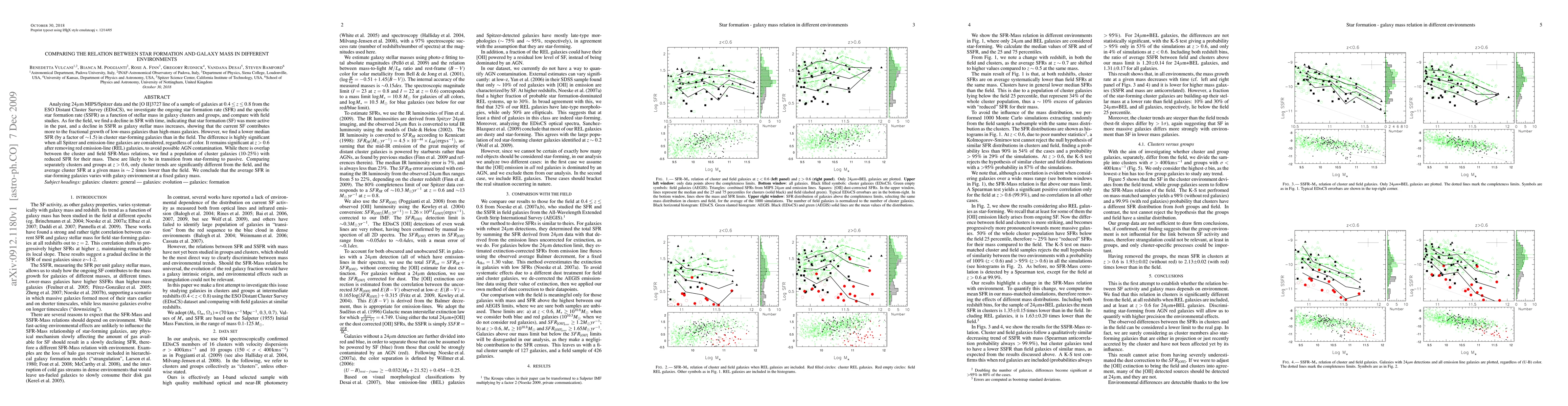 This study extends previous field studies by comparing star formation rates and specific star formation rates in different environments, revealing significant differences in SFRs between clusters and the field.