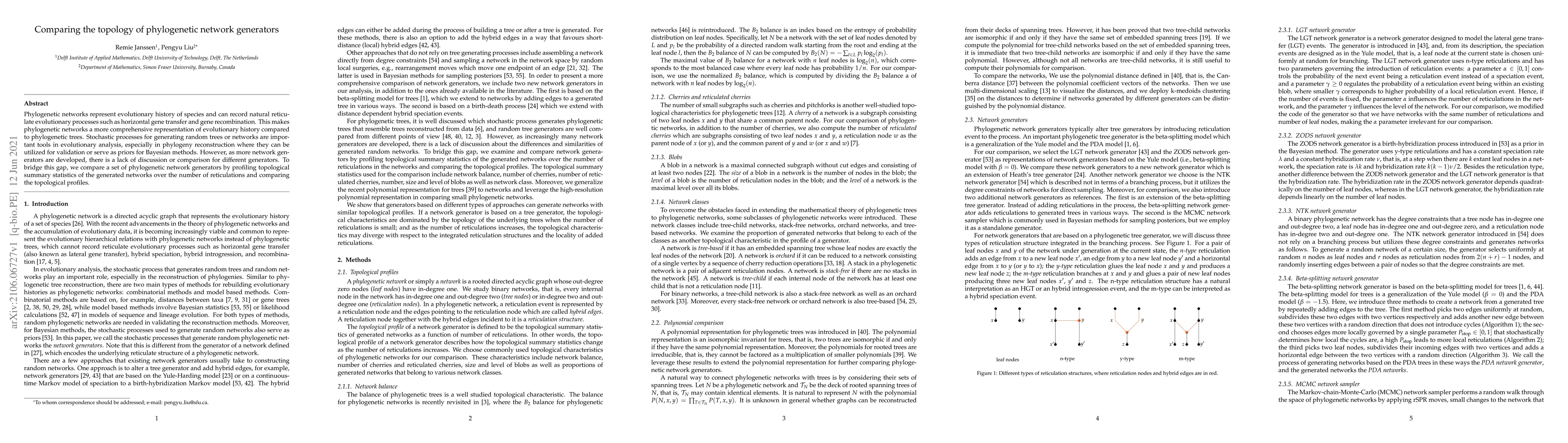 Phylogenetic network generators compare how they create evolutionary histories, with a focus on reticulation numbers, to better understand their use in phylogeny reconstruction.