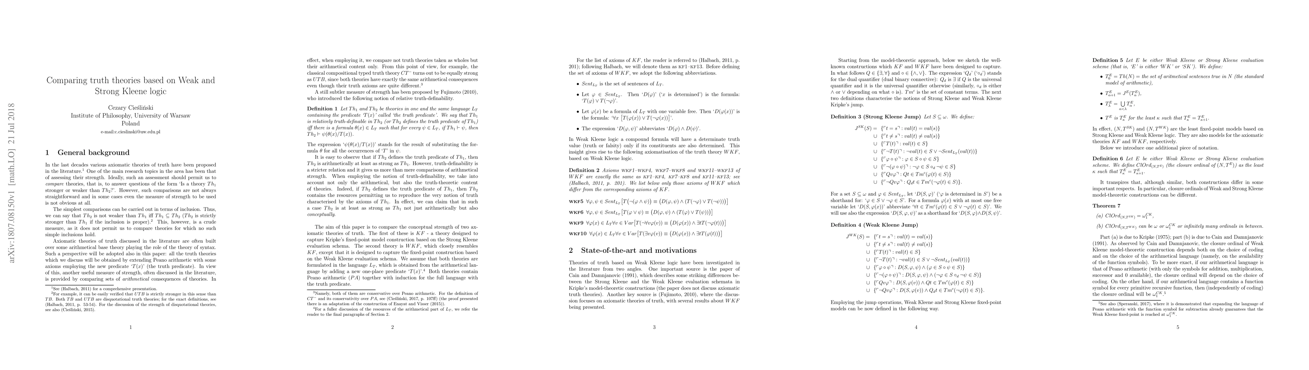 This paper compares the conceptual strength of two truth theories, KF and WKF, based on Strong and Weak Kleene logics respectively. It concludes that KF is not relatively truth-definable in WKF, contrasting with the previously established truth-definability of WKF in KF.