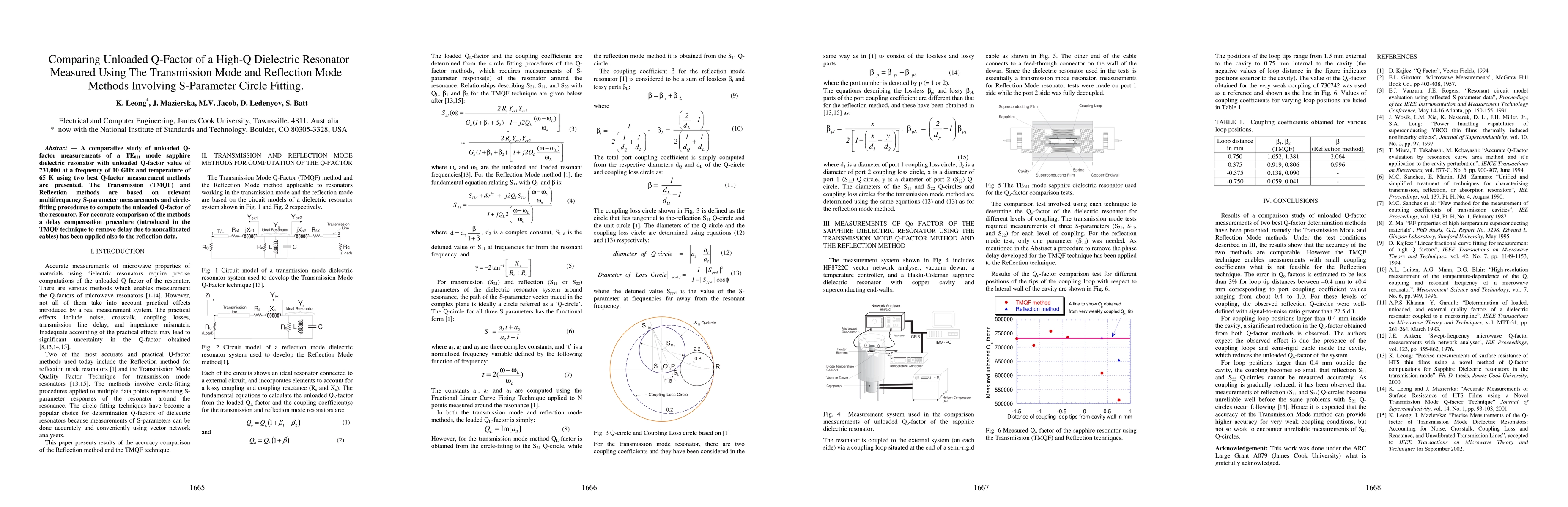 This paper compares the unloaded Q-factor measurements of a high-Q sapphire dielectric resonator using transmission and reflection methods based on S-parameter circle fitting. Both methods show comparable results after applying a delay compensation procedure to the reflection data.