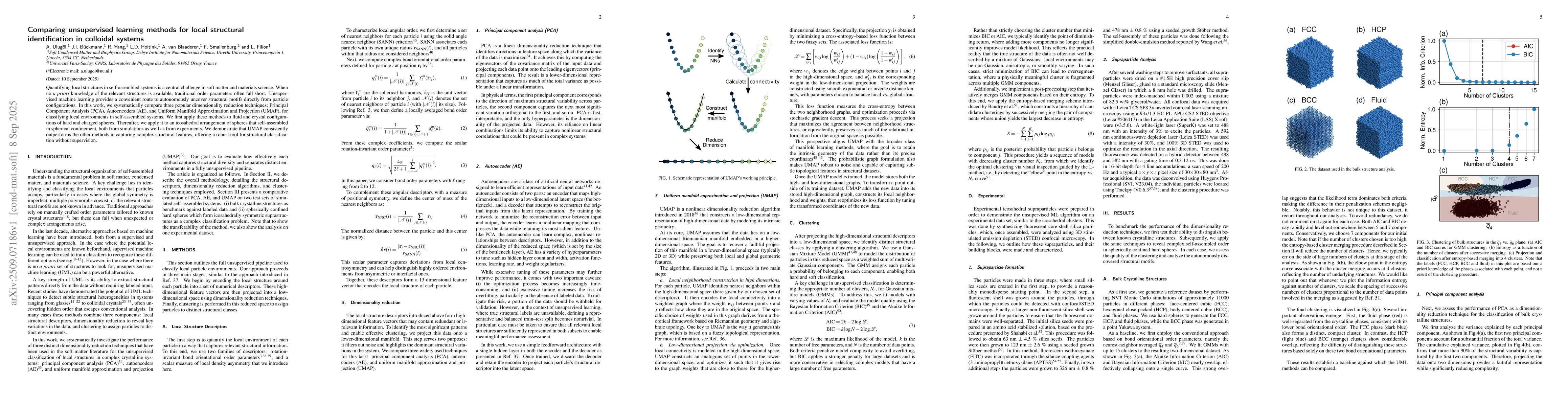 Quantifying local structures in self-assembled systems is a central challenge in soft matter and materials science. When no a priori knowledge of the relevant structures is available, traditional order parameters often fall short. Unsupervised machine learning provides a convenient route to autonomously uncover structural motifs directly from particle configurations. In this work, we systematically compare three popular dimensionality reduction techniques; Principal Component Analysis (PCA), Autoencoders (AE), and Uniform Manifold Approximation and Projection (UMAP), for classifying local environments in self-assembled systems. We first apply these methods to fluid and crystal configurations of hard and charged spheres. Thereafter, we apply it to an icosahedral arrangement of spheres that self-assembled in spherical confinement, both from simulations as well as from experiments. We demonstrate that UMAP consistently outperforms the other methods in capturing complex structural features, offering a robust tool for structural classification without supervision.
