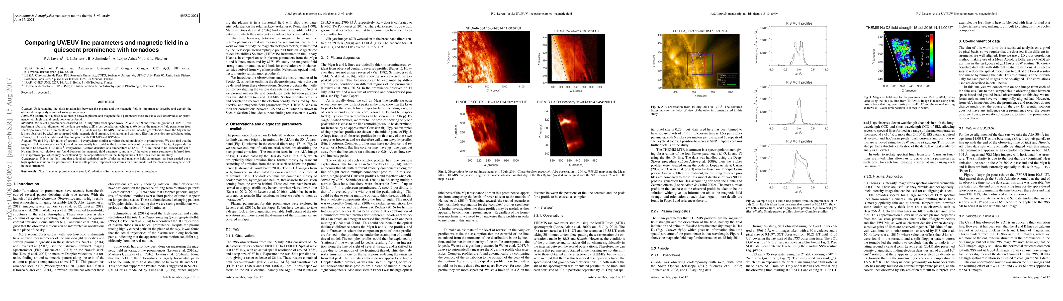 This study investigates the relationship between plasma and magnetic field parameters in a quiescent solar prominence with tornadoes, using high-resolution data from IRIS, Hinode, SDO, and THEMIS. Despite finding a strong magnetic field in the prominence's tornado-like legs, no significant correlations were observed between magnetic field and plasma parameters, likely due to differing line temperatures.