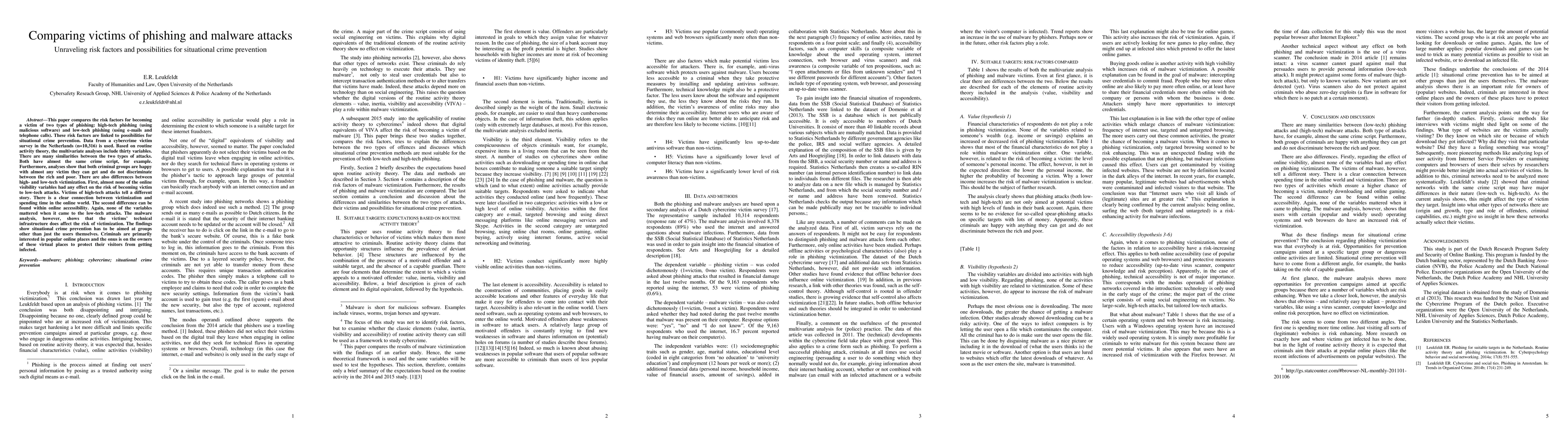 This study compares risk factors for high-tech and low-tech phishing victims, using data from a Dutch cybercrime survey. Findings suggest that situational crime prevention should extend beyond individual users to include the protection of popular online platforms by their owners.