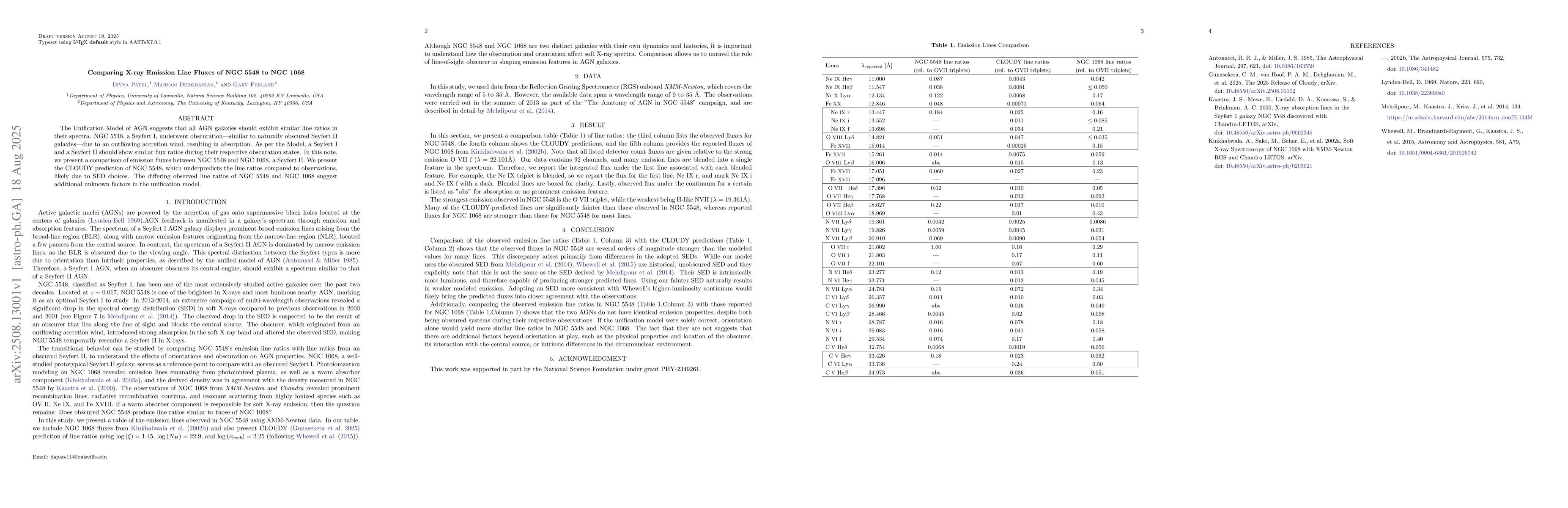 The Unification Model of AGN suggests that all AGN galaxies should exhibit similar line ratios in their spectra. NGC 5548, a Seyfert I, underwent obscuration -- similar to naturally obscured Seyfert II galaxies -- due to an outflowing accretion wind, resulting in absorption. As per the Model, a Seyfert I and a Seyfert II should show similar flux ratios during their respective obscuration states. In this note, we present a comparison of emission fluxes between NGC 5548 and NGC 1068, a Seyfert II. We present the CLOUDY prediction of NGC 5548, which underpredicts the line ratios compared to observations, likely due to SED choices. The differing observed line ratios of NGC 5548 and NGC 1068 suggest additional unknown factors in the unification model.