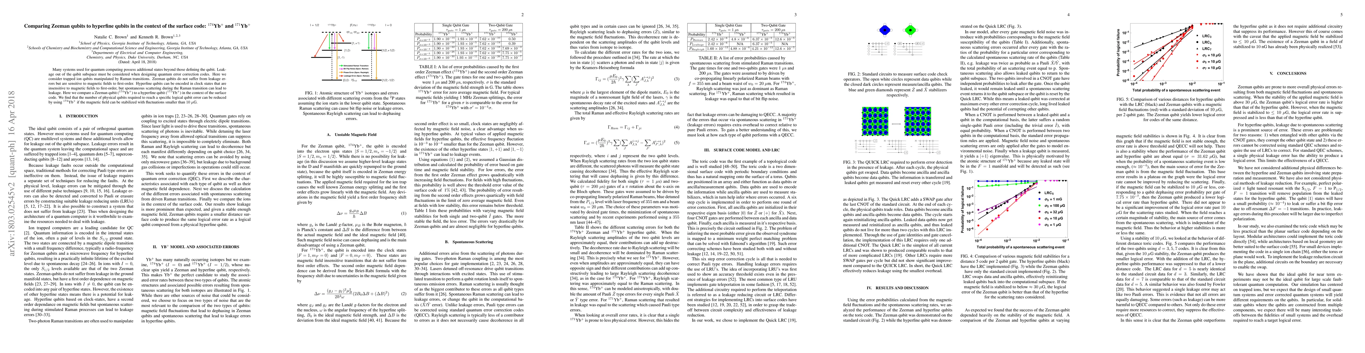 Many systems used for quantum computing possess additional states beyond those defining the qubit. Leakage out of the qubit subspace must be considered when designing quantum error correction codes. Here we consider trapped ion qubits manipulated by Raman transitions. Zeeman qubits do not suffer from leakage errors but are sensitive to magnetic fields to first-order. Hyperfine qubits can be encoded in clock states that are insensitive to magnetic fields to first-order, but spontaneous scattering during the Raman transition can lead to leakage. Here we compare a Zeeman qubit ($^{174}$Yb$^+$) to a hyperfine qubit ($^{171}$Yb$^+$) in the context of the surface code. We find that the number of physical qubits required to reach a specific logical qubit error can be reduced by using $^{174}$Yb$^+$ if the magnetic field can be stabilized with fluctuations smaller than $10$ $\mu$G.