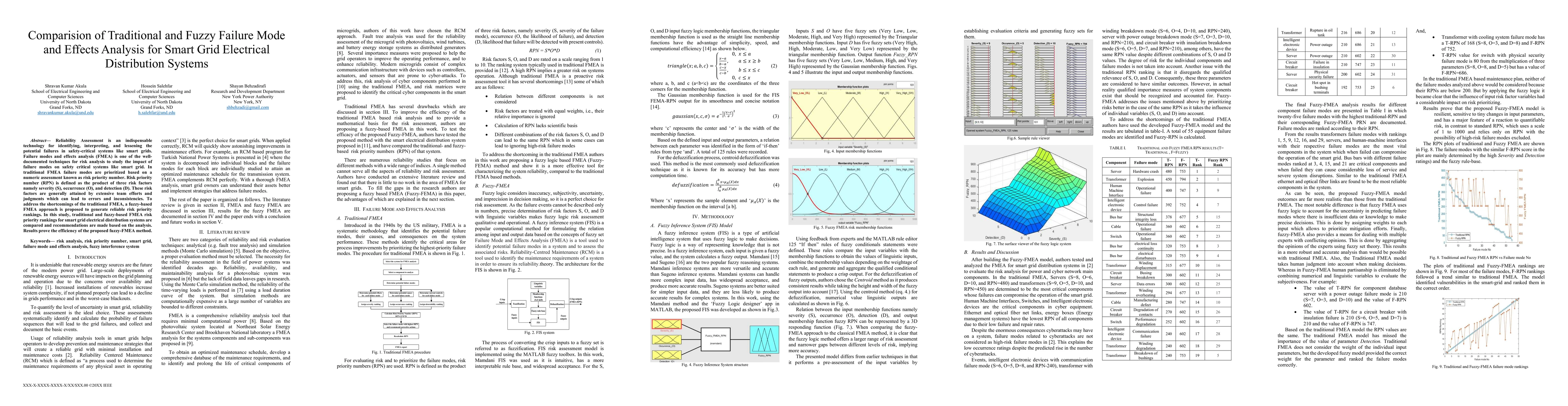 This paper compares traditional FMEA and a fuzzy-based FMEA approach for assessing risks in smart grid electrical distribution systems, demonstrating that the fuzzy method provides more reliable risk priority rankings by addressing inconsistencies in traditional methods.