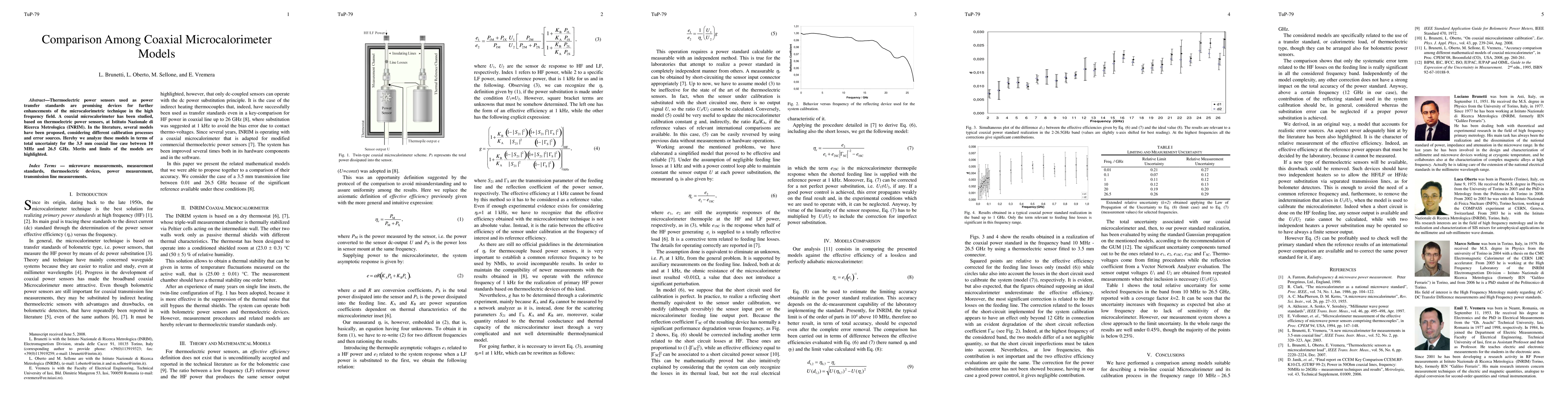 Thermoelectric power sensors used as power transfer standards are promising devices for further enhancements of the microcalorimetric technique in the high frequency field. A coaxial microcalorimeter has been studied, based on thermoelectric power sensors, at Istituto Nazionale di Ricerca Metrologica (INRIM). In the literature, several models have been proposed, considering different calibration processes and error sources. Hereby we analyze these models in terms of total uncertainty for the 3.5 mm coaxial line case between 10 MHz and 26.5 GHz. Merits and limits of the models are highlighted.