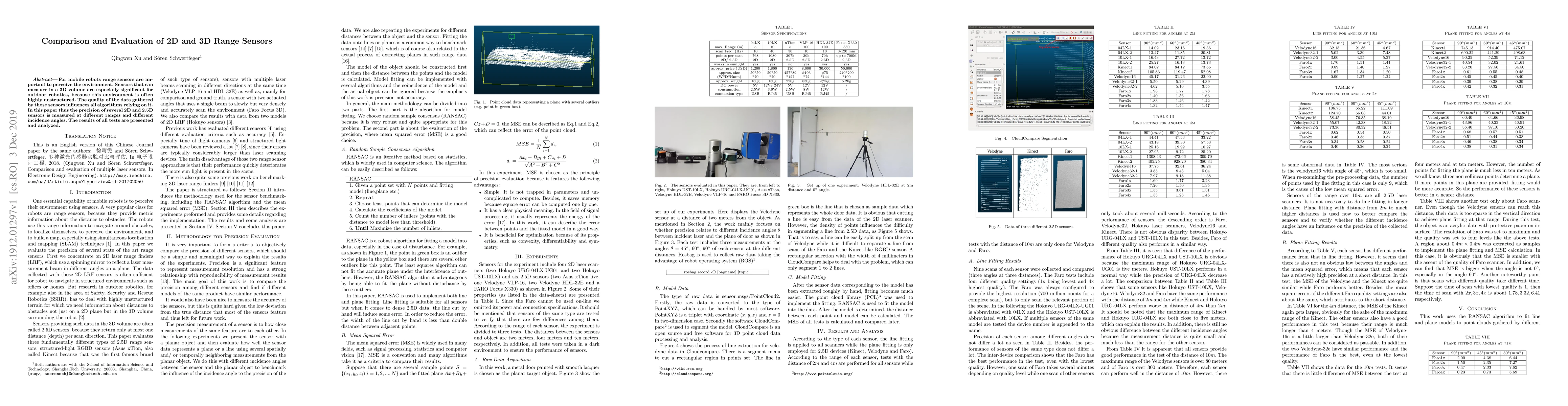 For mobile robots range sensors are important to perceive the environment. Sensors that can measure in a 3D volume are especially significant for outdoor robotics, because this environment is often highly unstructured. The quality of the data gathered by those sensors influences all algorithms relying on it. In this paper thus the precision of several 2D and 2.5D sensors is measured at different ranges and different incidence angles. The results of all tests are presented and analyzed.