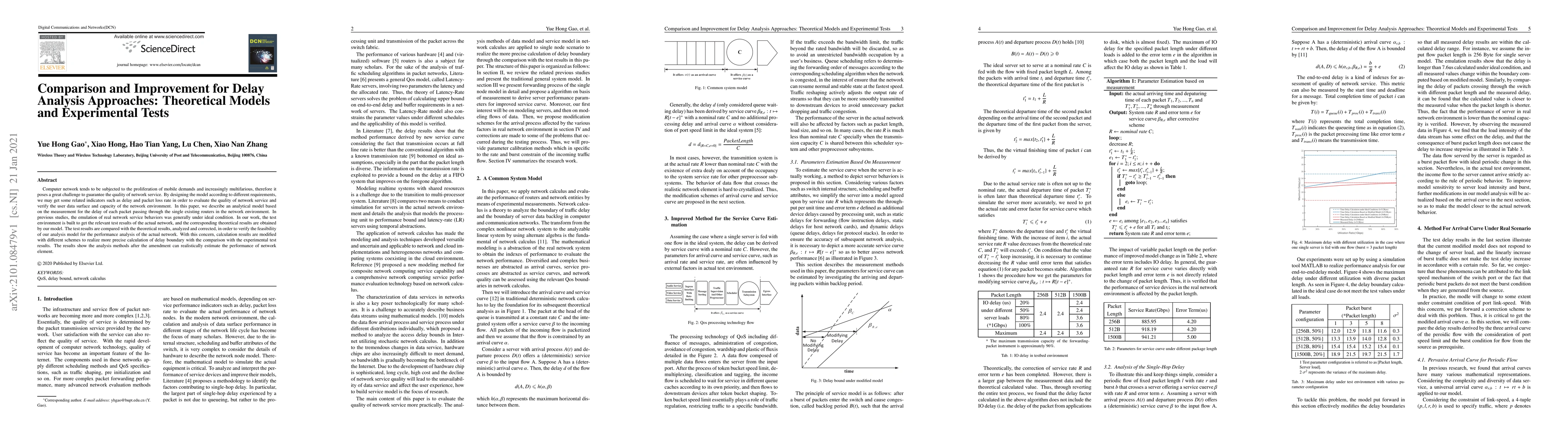 Computer network tends to be subjected to the proliferation of mobile demands and increasingly multifarious, therefore it poses a great challenge to guarantee the quality of network service. By designing the model according to different requirements, we may get some related indicators such as delay and packet loss rate in order to evaluate the quality of network service and verify the user data surface and capacity of the network environment. In this paper, we describe an analytical model based on the measurement for the delay of each packet passing through the single existing routers in the network environment. In previous studies, the emulation of real network service behaviors was generally under ideal condition. In our work, the test environment is built to get the relevant test results of the actual network, and the corresponding theoretical results are obtained by our model. The test results are compared with the theoretical results, analyzed and corrected, in order to verify the feasibility of our analysis model for the performance analysis of the actual network. With this concern, calculation results are modified with different schemes to realize more precise calculation of delay boundary with the comparison with the experimental test results. The results show the analysis methods after the amendment can realistically estimate the performance of network element.