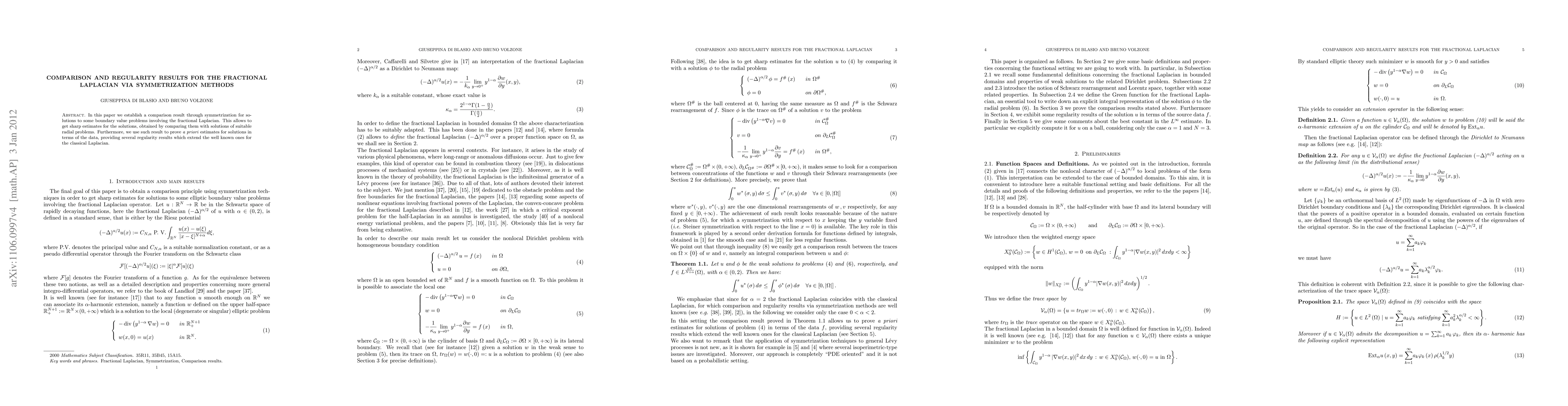 This paper establishes a comparison result using symmetrization methods for solutions to boundary value problems involving the fractional Laplacian, leading to sharp estimates and extending classical Laplacian regularity results. The approach also provides a priori estimates for the solutions.