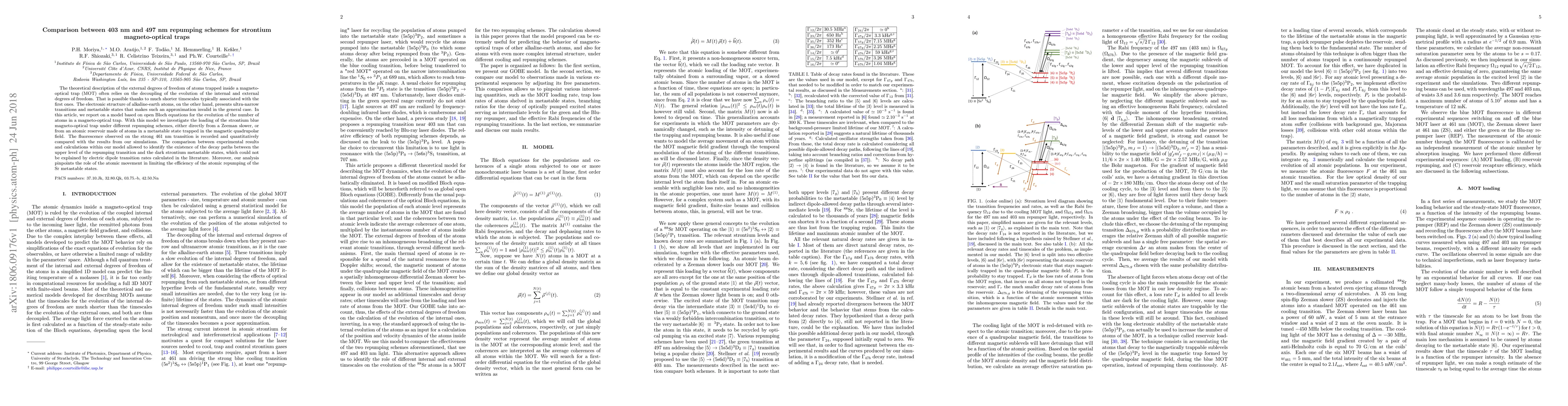 This paper compares the performance of 403 nm and 497 nm repumping schemes in strontium magneto-optical traps, revealing the existence of decay paths between repumping transitions and metastable states, and highlighting the influence of atomic movement on repumping efficiency.