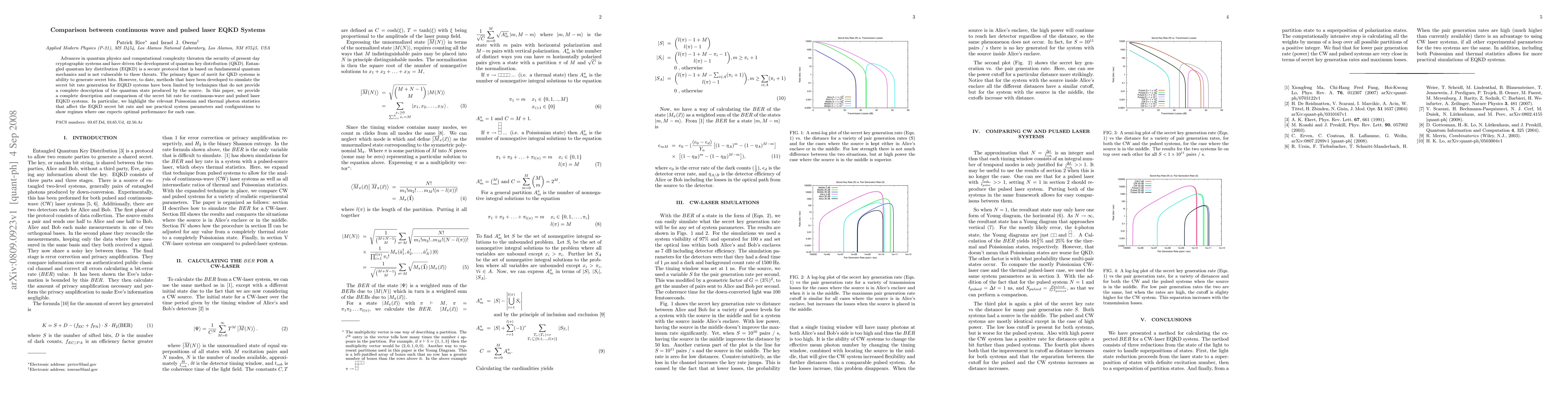 This paper compares the secret bit rates of continuous-wave and pulsed laser EQKD systems, highlighting optimal performance regimes for each case.