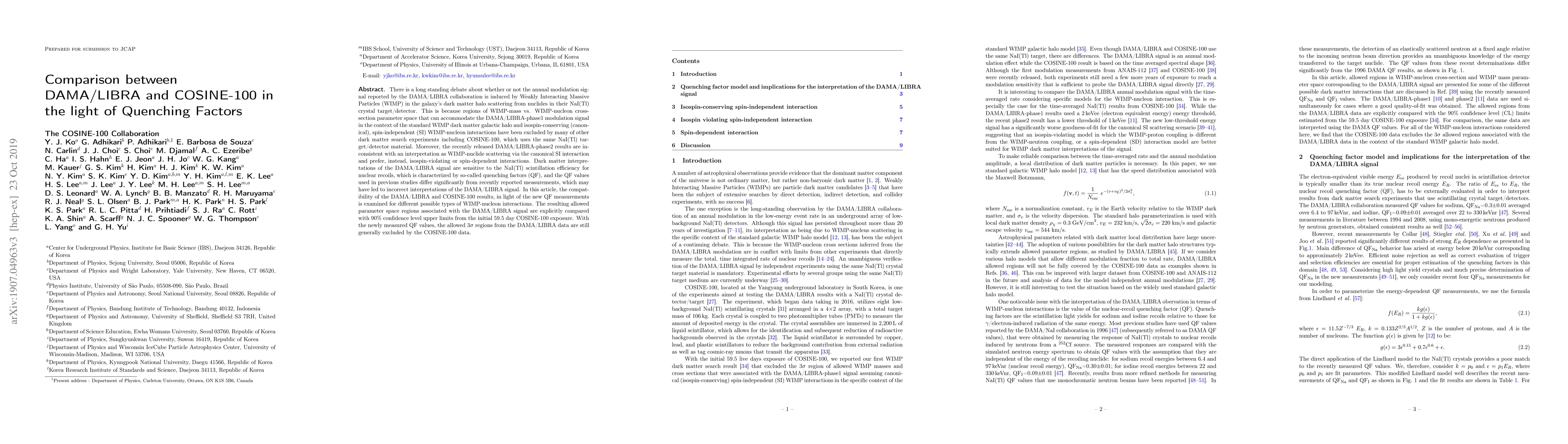 This paper compares DAMA/LIBRA and COSINE-100 dark matter search results, focusing on quenching factors affecting NaI(Tl) detectors. Despite new quenching factor measurements, DAMA/LIBRA's allowed parameter space remains excluded by COSINE-100's 90% confidence limits.