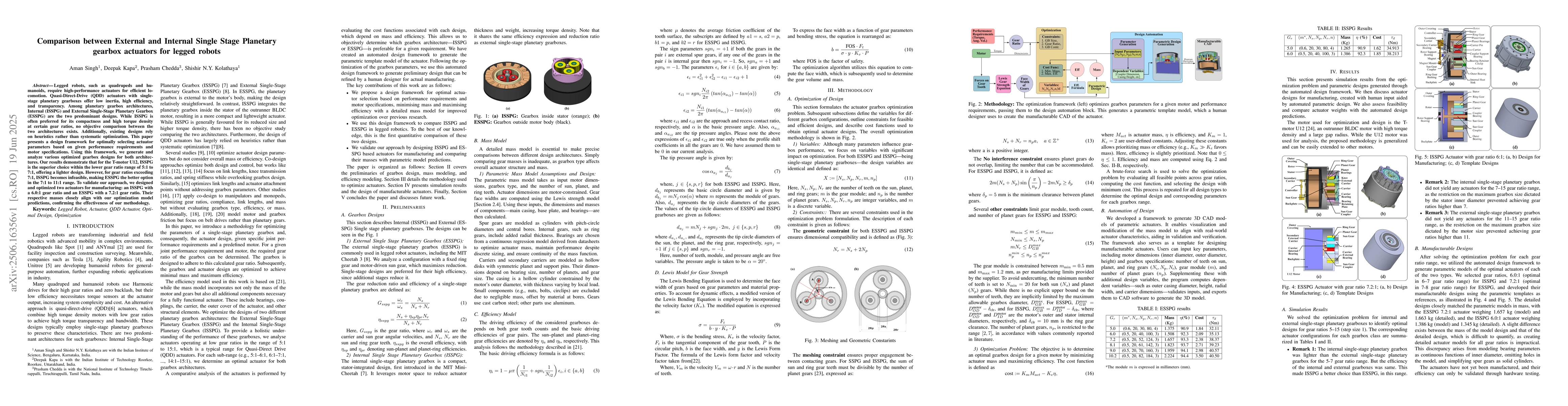 This research provides an objective comparison between ISSPG and ESSPG architectures for legged robot actuators, minimizing mass and maximizing efficiency, which is crucial for efficient locomotion in robots such as quadrupeds and humanoids.
