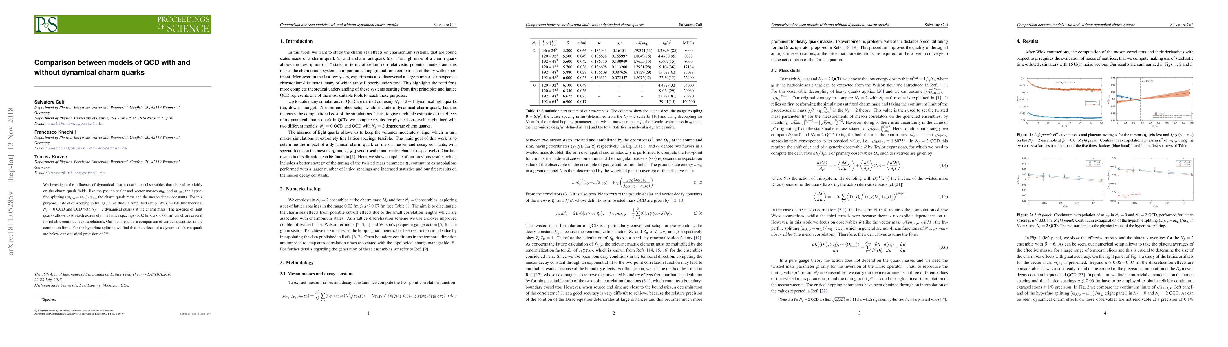 We investigate the influence of dynamical charm quarks on observables that depend explicitly on the charm quark fields, like the pseudo-scalar and vector masses $m_{\eta_c}$ and $m_{J/\psi}$, the hyperfine splitting $(m_{J/\psi}-m_{\eta_c})/m_{\eta_c}$, the charm quark mass and the meson decay constants. For this purpose, instead of working in full QCD we study a simplified setup. We simulate two theories: $N_f= 0$ QCD and QCD with $N_f= 2$ dynamical quarks at the charm mass. The absence of light quarks allows us to reach extremely fine lattice spacings (0.02 fm < a < 0.05 fm) which are crucial for reliable continuum extrapolations. Our main result is a comparison of various quantities in the continuum limit. For the hyperfine splitting we find that the effects of a dynamical charm quark are below our statistical precision of $2\%$.