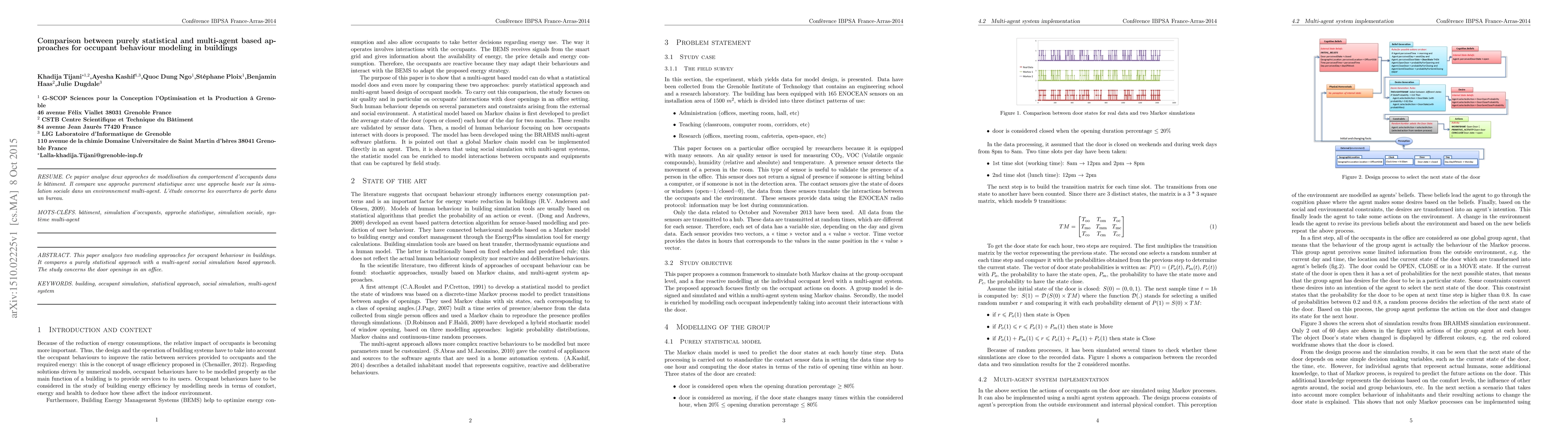This paper analyzes two modeling approaches for occupant behaviour in buildings. It compares a purely statistical approach with a multi-agent social simulation based approach. The study concerns the door openings in an office.