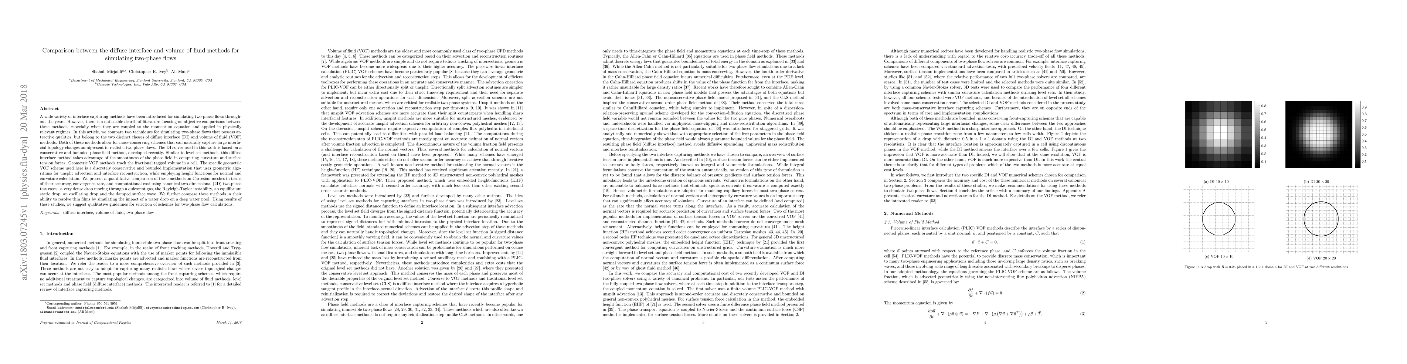 This paper compares the diffuse interface (DI) and volume of fluid (VOF) methods for simulating two-phase flows, evaluating their accuracy, convergence rate, and computational cost through various canonical test cases. The study suggests guidelines for selecting appropriate methods based on the specific requirements of two-phase flow simulations.