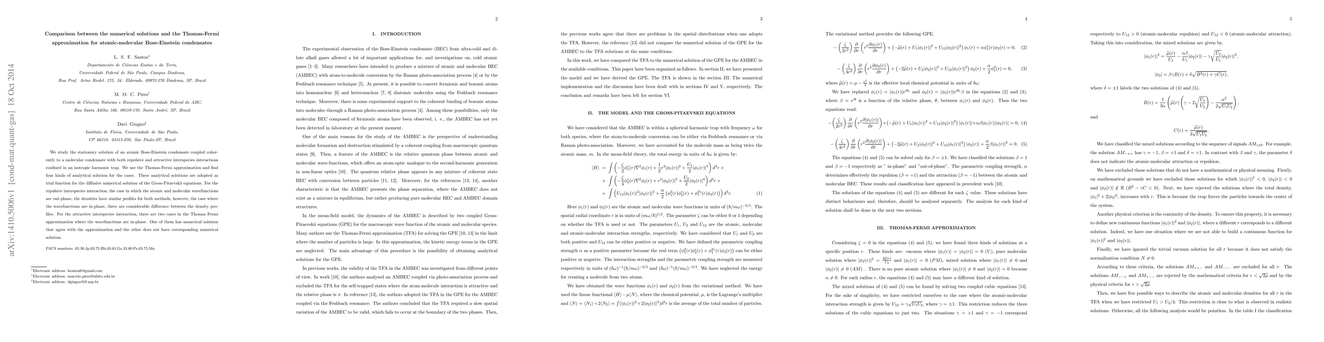 We study the stationary solution of an atomic Bose-Einstein condensate coupled coherently to a molecular condensate with both repulsive and attractive interspecies interactions confined in an isotropic harmonic trap. We use the Thomas-Fermi approximation and find four kinds of analytical solution for the cases. These analytical solutions are adopted as trial function for the diffusive numerical solution of the Gross-Pitaevskii equations. For the repulsive interspecies interaction, the case in which the atomic and molecular wavefunctions are out-phase, the densities have similar profiles for both methods, however, the case where the wavefunctions are in-phase, there are considerable difference between the density profiles. For the attractive interspecies interaction, there are two cases in the Thomas Fermi approximation where the wavefunctions are in-phase. One of them has numerical solution that agree with the approximation and the other does not have corresponding numerical solution.