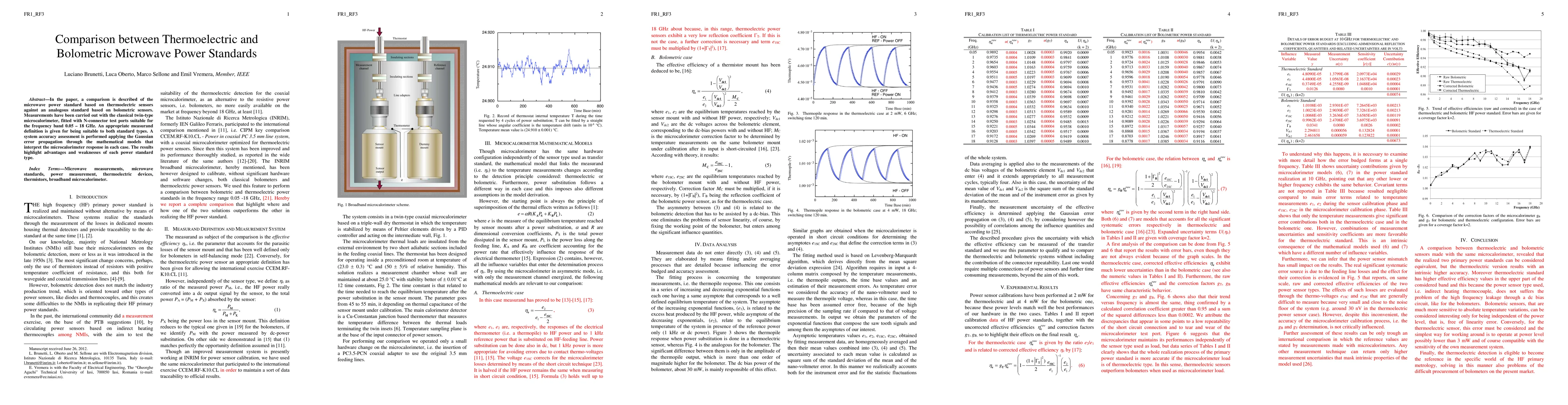 This paper compares thermoelectric and bolometric microwave power standards, evaluating their performance using a twin-type microcalorimeter across the 0.05-18 GHz frequency band. The study assesses system accuracy via Gaussian error propagation, revealing the strengths and limitations of each standard type.