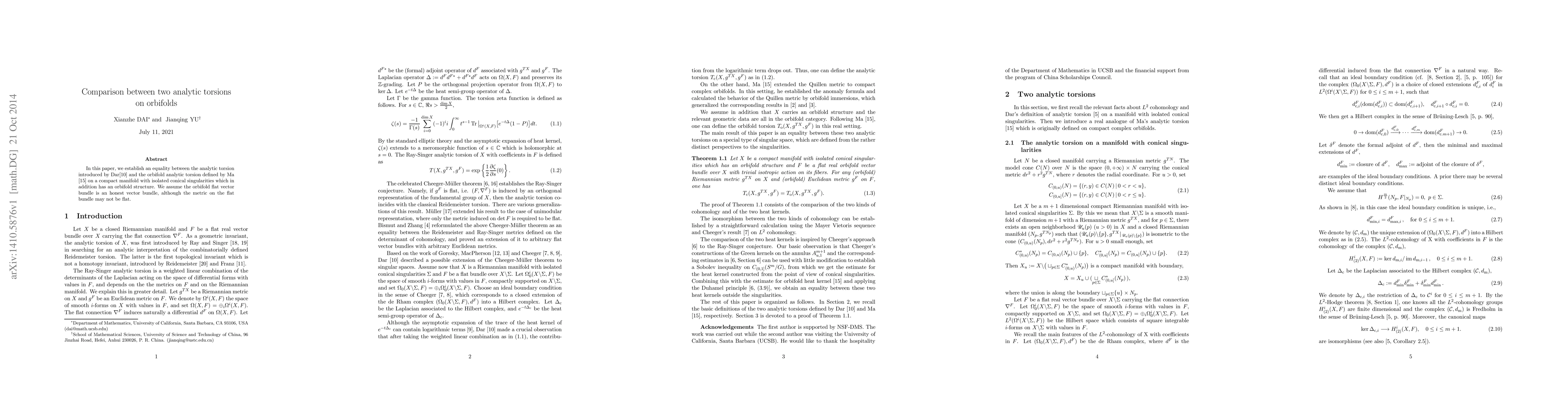 In this paper, we establish an equality between the analytic torsion introduced by Dar\cite{MR876230} and the orbifold analytic torsion defined by Ma \cite{MR2140438} on a compact manifold with isolated conical singularities which in addition has an orbifold structure. We assume the orbifold flat vector bundle is an honest vector bundle, although the metric on the flat bundle may not be flat.