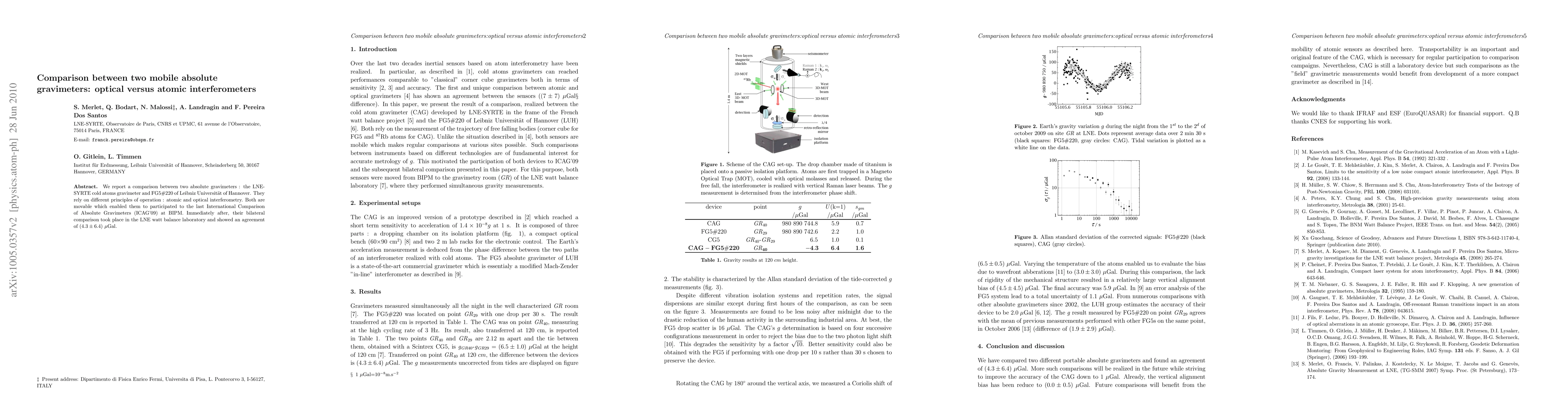 This study compares two absolute gravimeters—the LNE-SYRTE cold atoms gravimeter using atomic interferometry and the FG5#220 from Leibniz Universität employing optical interferometry—showing an agreement of 4.3 +/- 6.4 μGal in their measurements. Both devices participated in the ICAG'09 at BIPM.