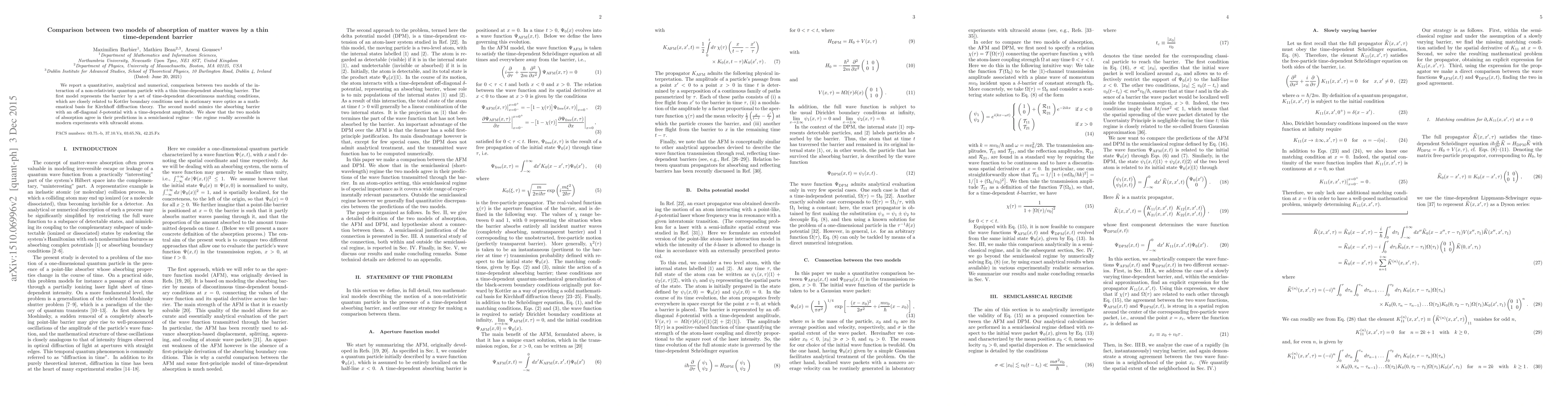 This paper compares two models for the absorption of matter waves by a thin time-dependent barrier: one using discontinuous matching conditions and the other employing an off-diagonal $\delta$-potential. The study finds both models yield consistent results in a semiclassical regime applicable to current ultracold atom experiments.