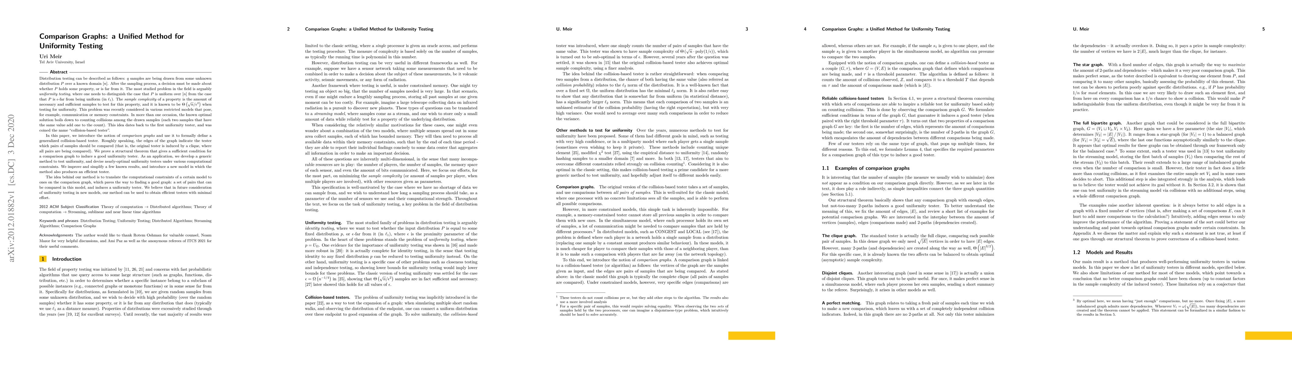 This paper introduces comparison graphs to unify uniformity testing methods, providing a new framework for efficiently distinguishing between distributions. It also devises nearly-optimal testers under various computational constraints.