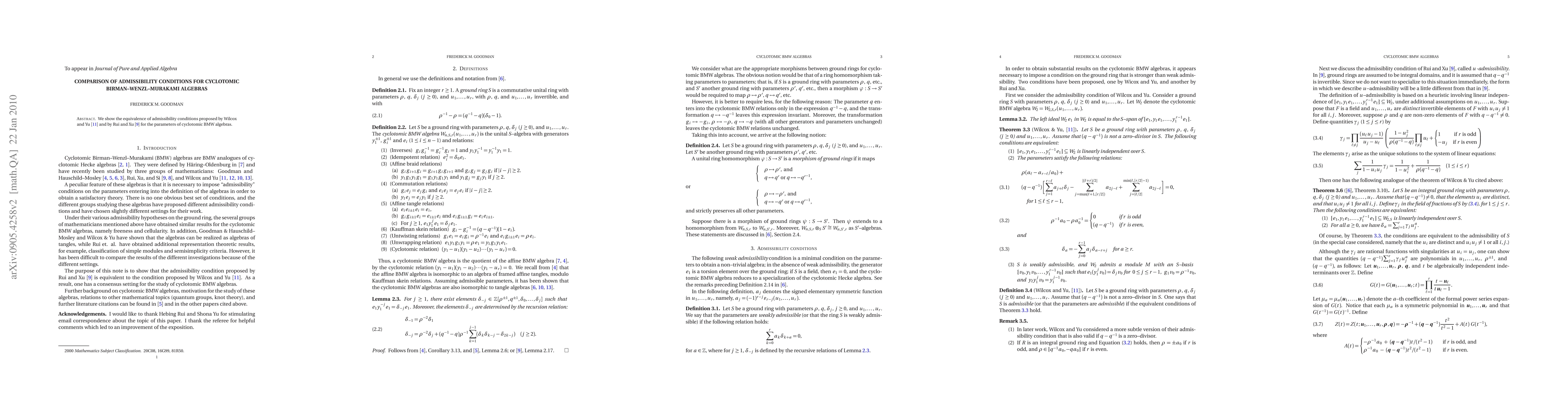 Summary: This paper establishes the equivalence between the admissibility conditions for cyclotomic Birman-Wenzl-Murakami (BMW) algebras proposed by Wilcox and Yu and those by Rui and Xu, thereby unifying two sets of parameter constraints.