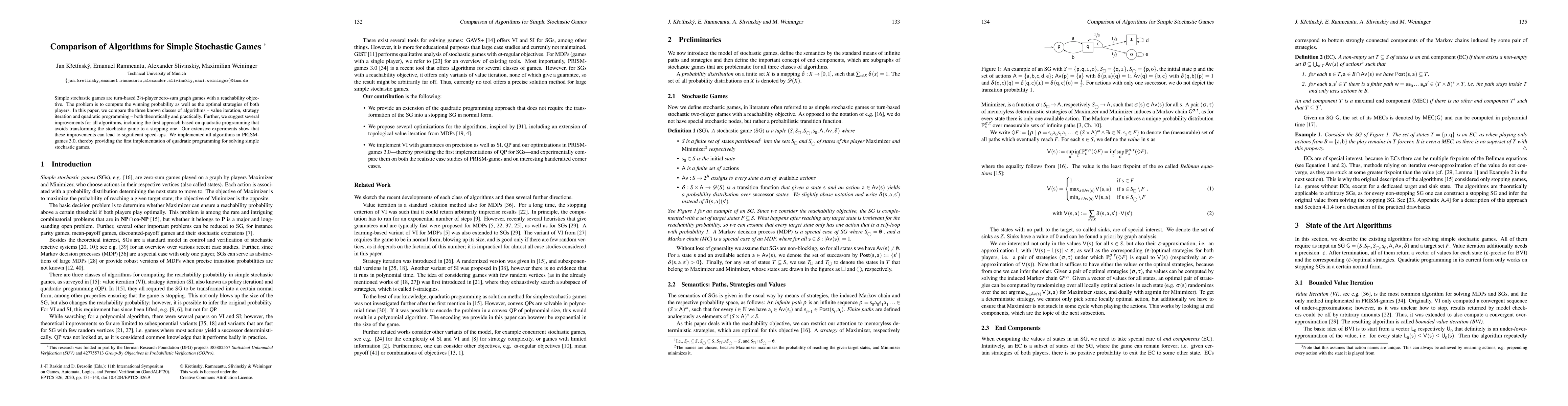 This paper compares three classes of algorithms for solving simple stochastic games: value iteration, strategy iteration, and quadratic programming. It proposes improvements leading to significant speed-ups and provides the first implementation of quadratic programming in PRISM-games 3.0, avoiding the transformation to a stopping game.