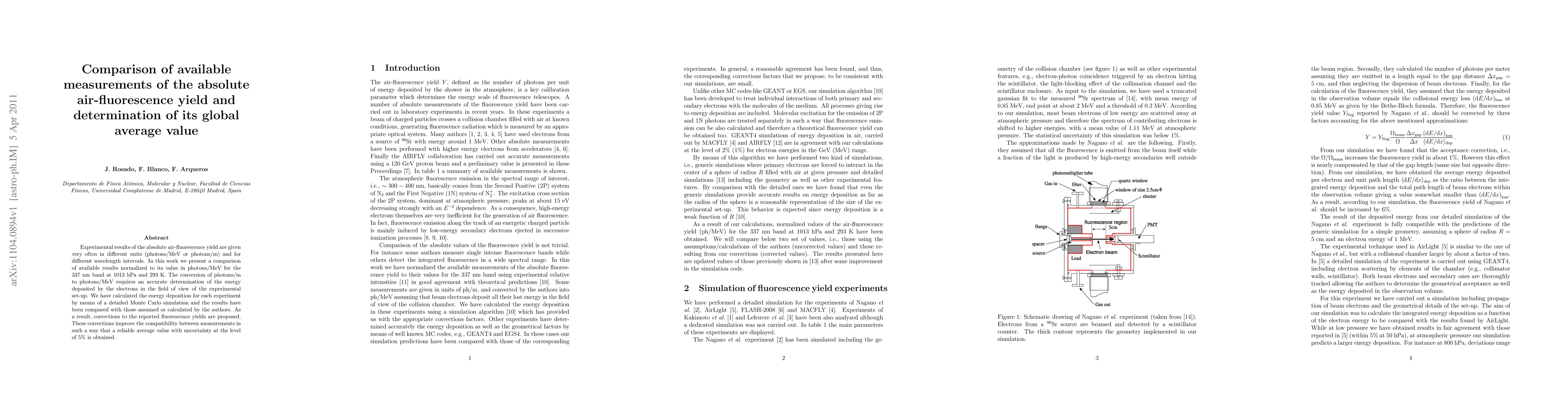 This paper compares various experimental measurements of the absolute air-fluorescence yield, normalizing them to a common unit (photons/MeV) for the 337 nm band. The study proposes corrections to reported yields based on detailed Monte Carlo simulations, resulting in a reliable global average value with a 5% uncertainty.
