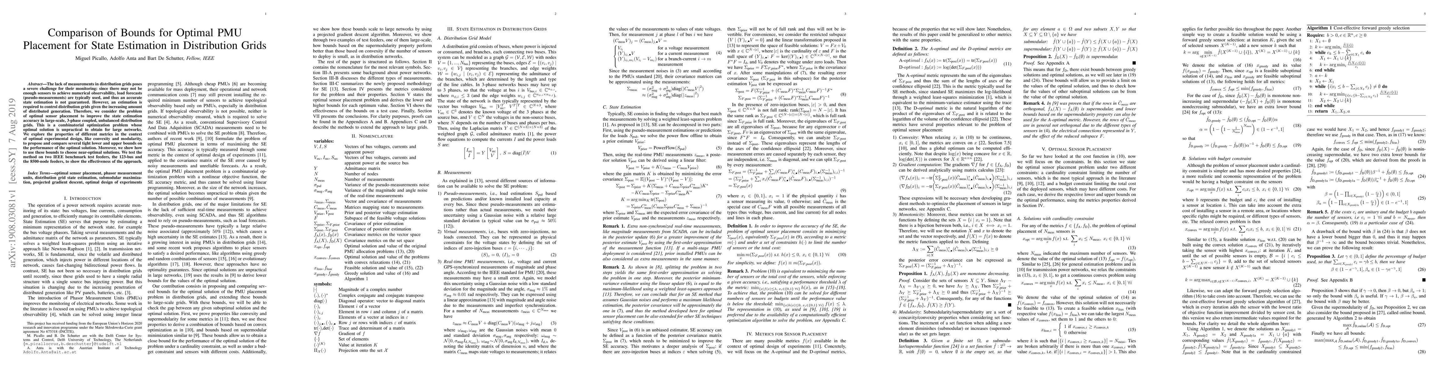 This paper investigates optimal placement of Phasor Measurement Units (PMUs) in distribution grids to enhance state estimation accuracy, proposing and comparing various bounds for optimal solutions. The study demonstrates the effectiveness of these bounds on IEEE benchmark feeders, aiding in the selection of near-optimal PMU placements.