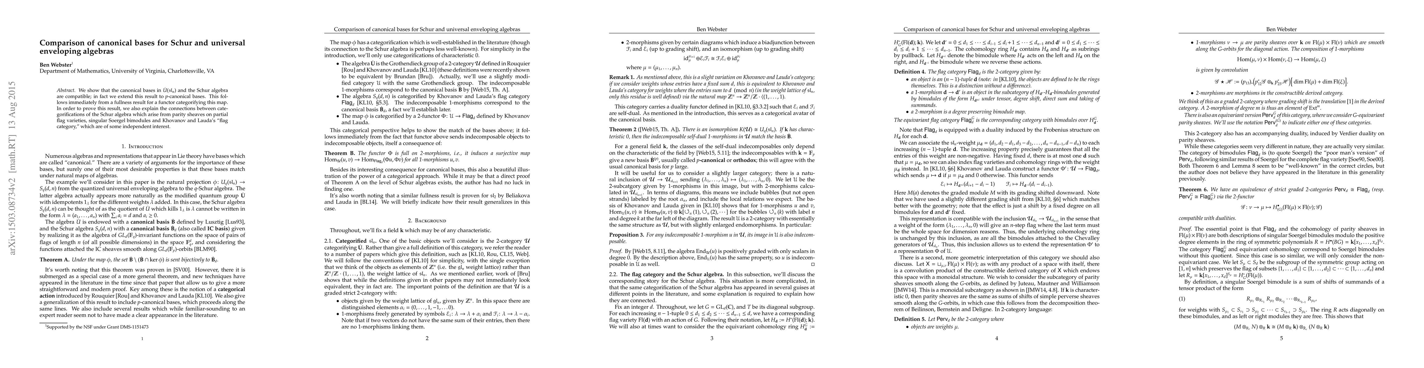 Researchers have found that canonical bases for Schur algebra and universal enveloping algebras of sl_n are compatible, with a new extension to p-canonical bases.