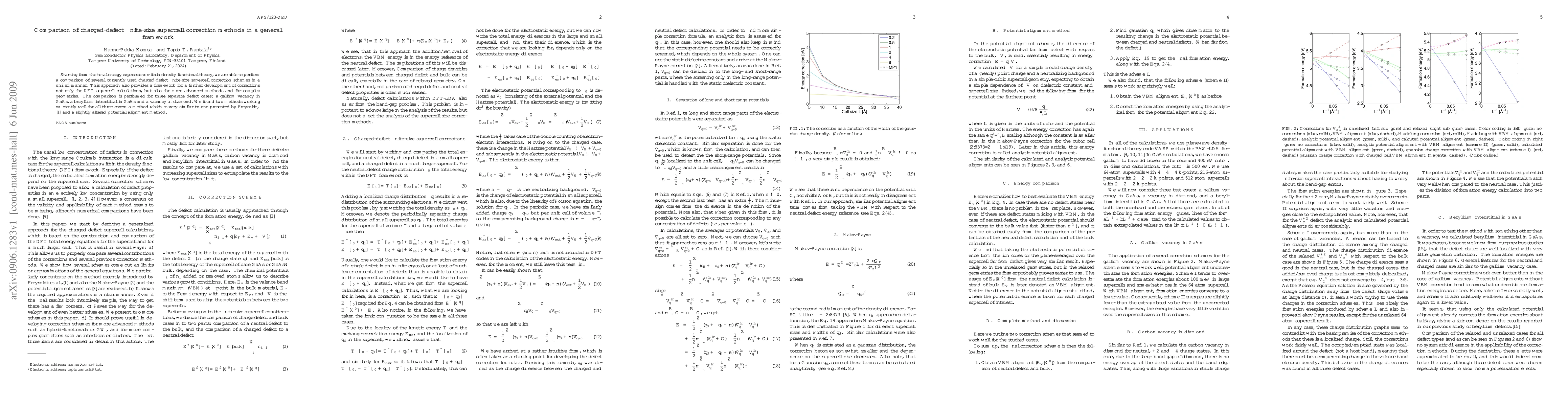 This paper compares various charged-defect finite-size supercell correction methods within density functional theory, finding that two specific methods perform well across three defect cases: a gallium vacancy in GaAs, a beryllium interstitial in GaAs, and a vacancy in diamond. The study provides a unified framework for future developments in supercell corrections.