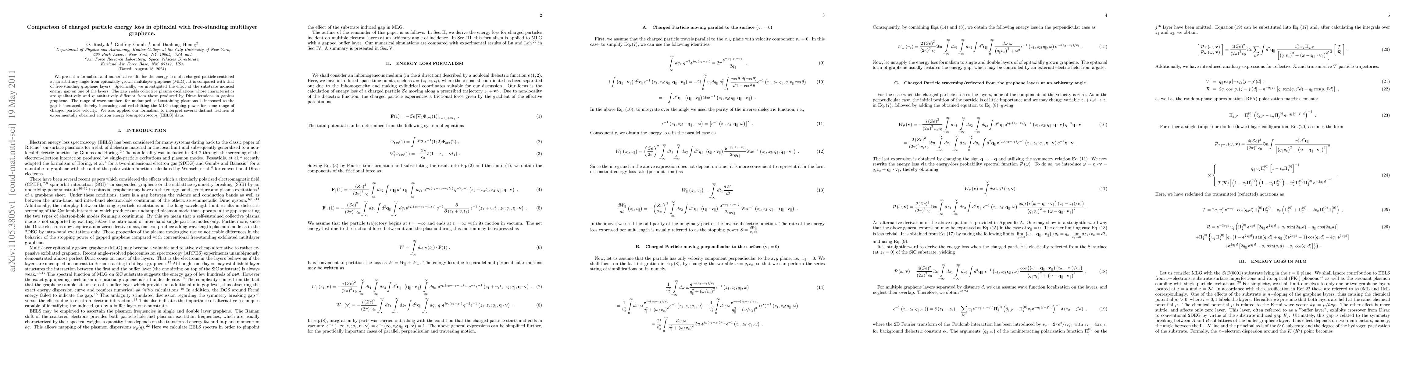 This study compares energy loss of charged particles in epitaxial multilayer graphene to free-standing graphene, revealing a substrate-induced energy gap that affects plasma oscillations and increases the stopping power for some velocity ranges.