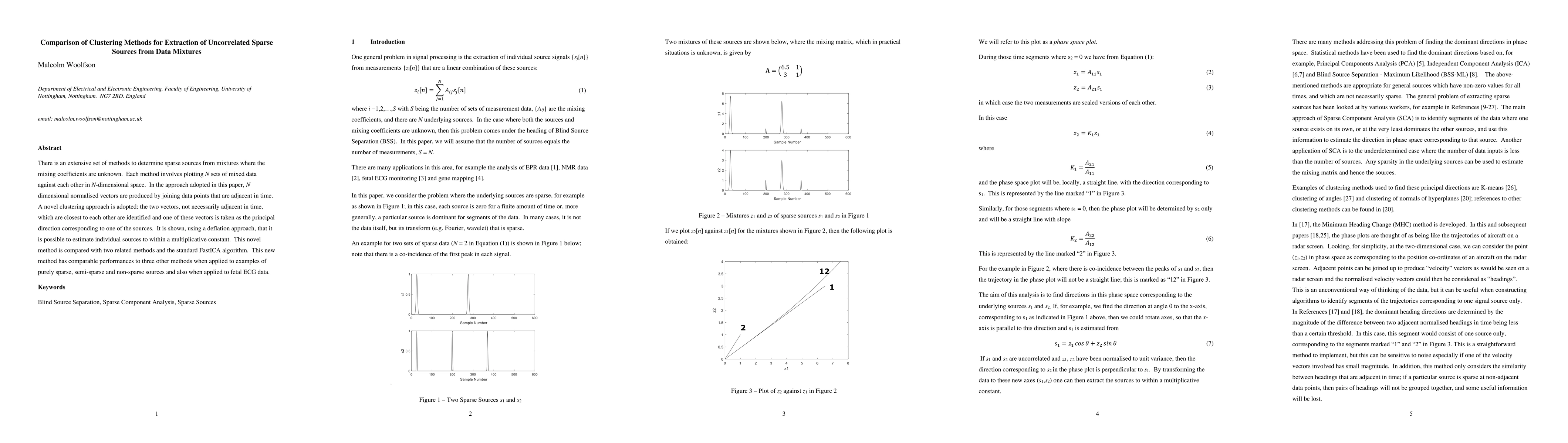 There is an extensive set of methods to determine sparse sources from mixtures where the mixing coefficients are unknown. Each method involves plotting N sets of mixed data against each other in N-dimensional space. In the approach adopted in this paper, N dimensional normalised vectors are produced by joining data points that are adjacent in time. A novel clustering approach is adopted: the two vectors, not necessarily adjacent in time, which are closest to each other are identified and one of these vectors is taken as the principal direction corresponding to one of the sources. It is shown, using a deflation approach, that it is possible to estimate individual sources to within a multiplicative constant. This novel method is compared with two related methods and the standard FastICA algorithm. This new method has comparable performances to three other methods when applied to examples of purely sparse, semi-sparse and non-sparse sources and also when applied to fetal ECG data.