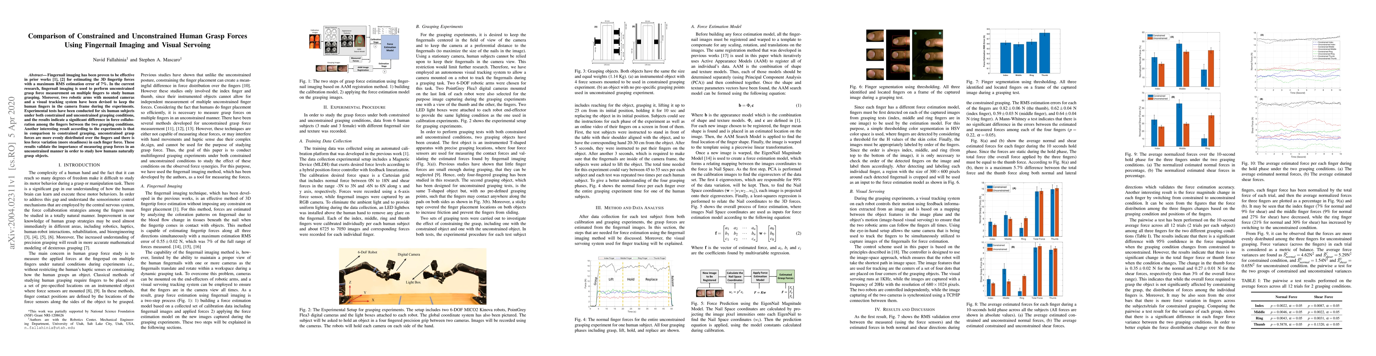 This paper compares constrained and unconstrained human grasp forces using fingernail imaging and visual servoing. Experiments show that unconstrained grasp forces are more evenly distributed and steadier compared to constrained grasp, highlighting the importance of studying natural grasping behaviors.