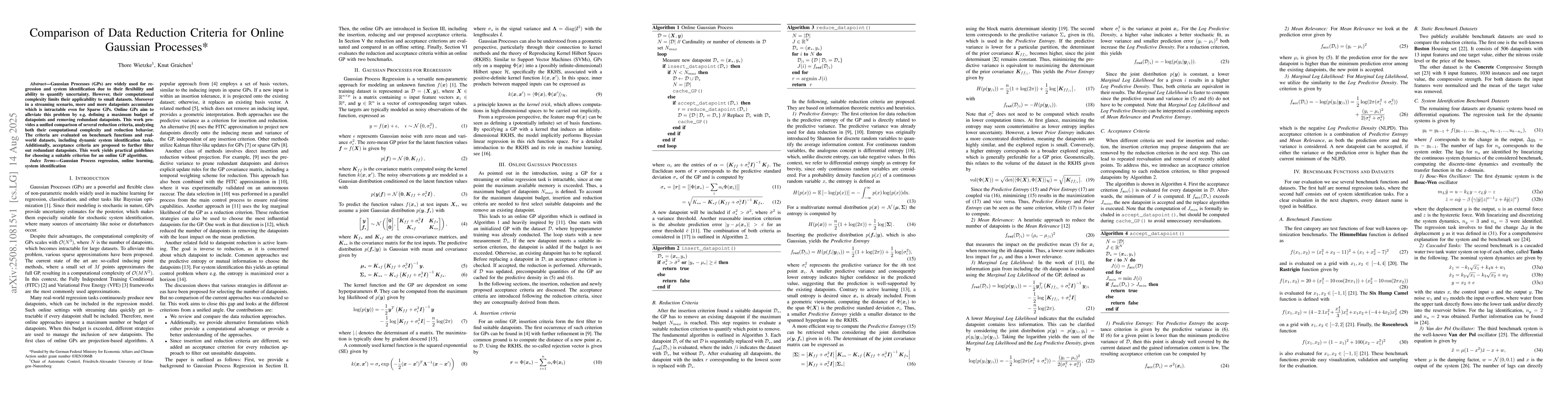 Gaussian Processes (GPs) are widely used for regression and system identification due to their flexibility and ability to quantify uncertainty. However, their computational complexity limits their applicability to small datasets. Moreover in a streaming scenario, more and more datapoints accumulate which is intractable even for Sparse GPs. Online GPs aim to alleviate this problem by e.g. defining a maximum budget of datapoints and removing redundant datapoints. This work provides a unified comparison of several reduction criteria, analyzing both their computational complexity and reduction behavior. The criteria are evaluated on benchmark functions and real-world datasets, including dynamic system identification tasks. Additionally, acceptance criteria are proposed to further filter out redundant datapoints. This work yields practical guidelines for choosing a suitable criterion for an online GP algorithm.