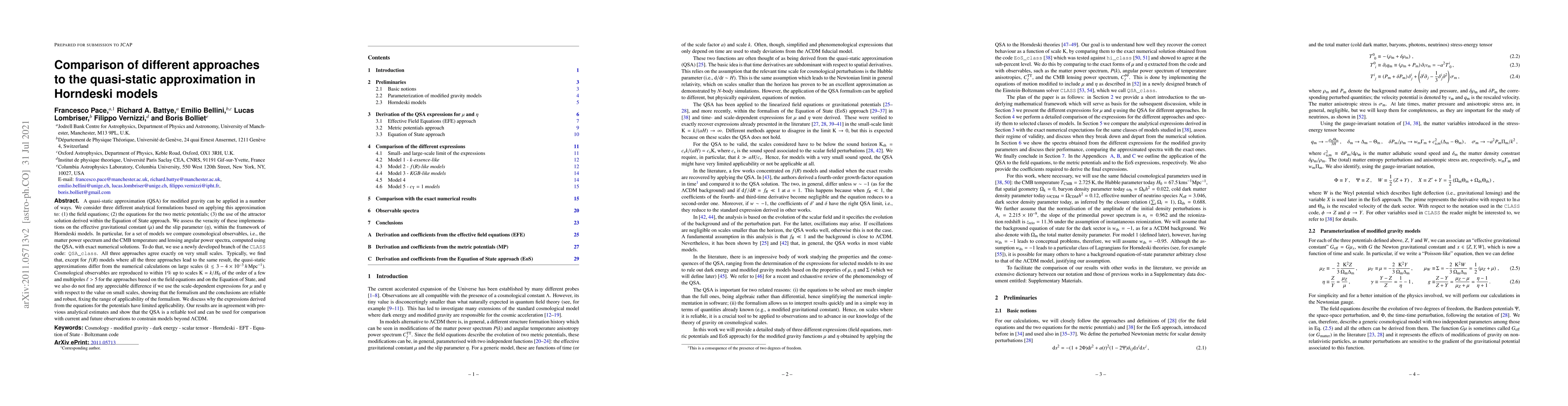 A quasi-static approximation (QSA) for modified gravity can be applied in a number of ways. We consider three different analytical formulations based on applying this approximation to: (1) the field equations; (2) the equations for the two metric potentials; (3) the use of the attractor solution derived within the Equation of State (EoS) approach. We assess the veracity of these implementations on the effective gravitational constant ($\mu$) and the slip parameter ($\eta$), within the framework of Horndeski models. In particular, for a set of models we compare cosmological observables, i.e., the matter power spectrum and the CMB temperature and lensing angular power spectra, computed using the QSA, with exact numerical solutions. To do that, we use a newly developed branch of the CLASS code: QSA_class. All three approaches agree exactly on very small scales. Typically, we find that, except for $f(R)$ models where all the three approaches lead to the same result, the quasi-static approximations differ from the numerical calculations on large scales ($k \lesssim 3 - 4 \times 10^{-3}\,h\,{\rm Mpc}^{-1}$). Cosmological observables are reproduced to within 1% up to scales ${\rm K} = k/H_0$ of the order of a few and $\ell>5$ for the approaches based on the field equations and on the EoS, and we also do not find any appreciable difference if we use the scale-dependent expressions for $\mu$ and $\eta$ with respect to the value on small scales, showing that the formalism and the conclusions are reliable and robust, fixing the range of applicability of the formalism. We discuss why the expressions derived from the equations for the potentials have limited applicability. Our results are in agreement with previous analytical estimates and show that the QSA is a reliable tool and can be used for comparison with current and future observations to constrain models beyond $\Lambda$CDM.