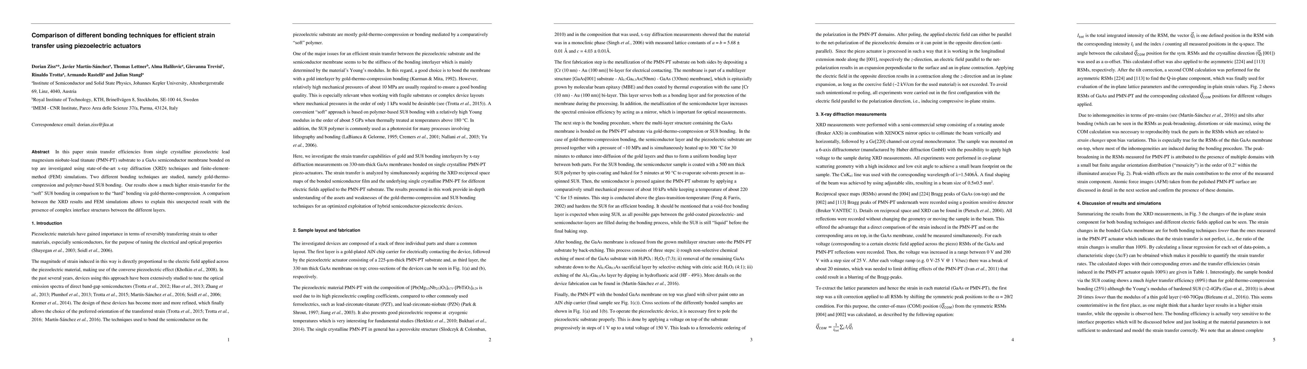 Researchers compared two bonding techniques for piezoelectric actuators and found that a 'soft' polymer-based SU8 bonding method transferred strain more efficiently than a traditional 'hard' gold-thermo-compression method.