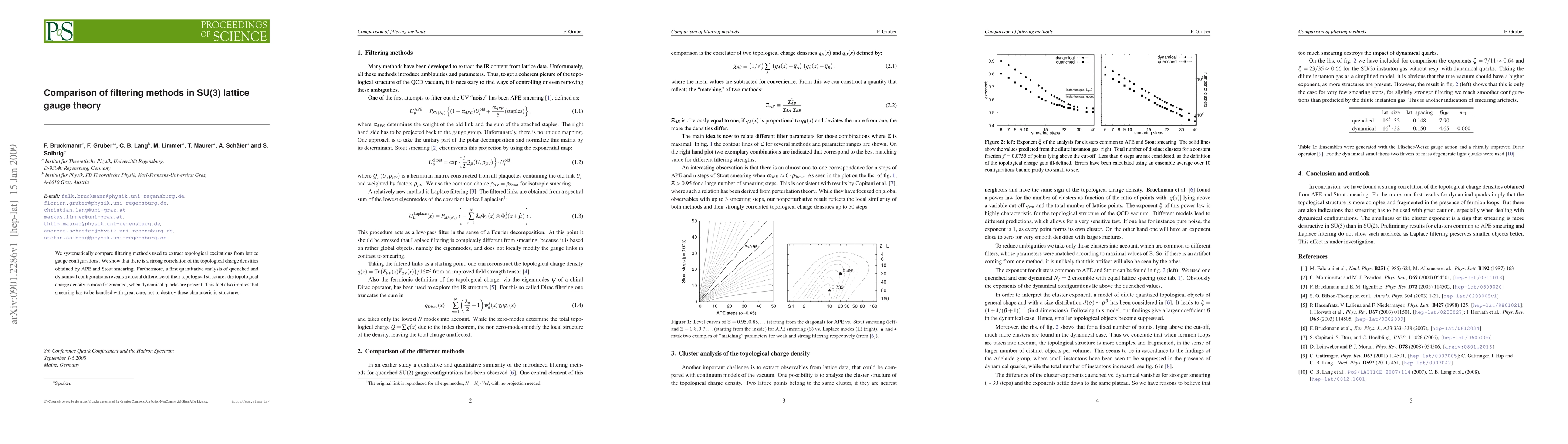 We systematically compare filtering methods used to extract topological excitations from lattice gauge configurations. We show that there is a strong correlation of the topological charge densities obtained by APE and Stout smearing. Furthermore, a first quantitative analysis of quenched and dynamical configurations reveals a crucial difference of their topological structure: the topological charge density is more fragmented, when dynamical quarks are present. This fact also implies that smearing has to be handled with great care, not to destroy these characteristic structures.