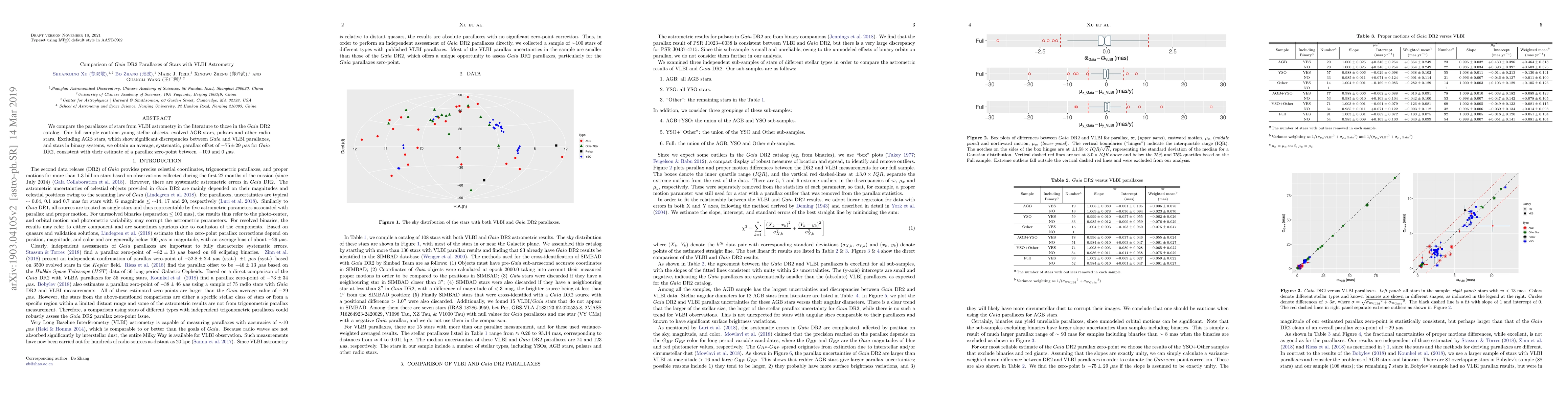 This paper compares Gaia DR2 parallaxes with VLBI astrometry, finding an average systematic offset of $-75 \pm 29~\mu$as for Gaia DR2, excluding AGB stars and binary systems. The offset is consistent with Gaia's estimated parallax zero-point error.